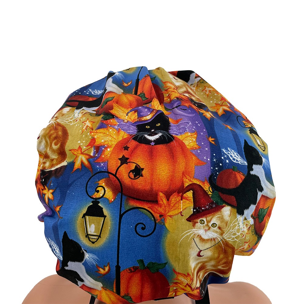 Bouffant Medical Cap – Halloween Fun – Moonlight Kitties – Iris Purple