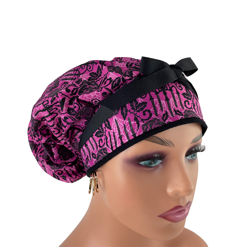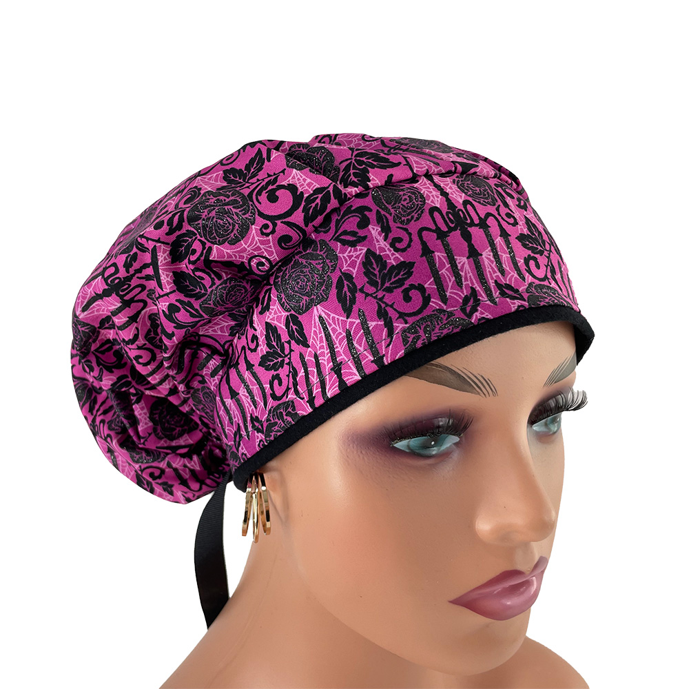 Bouffant Medical Cap – Totally Twilight-Gothic Halloween-Black/Fuchsia/Glitter