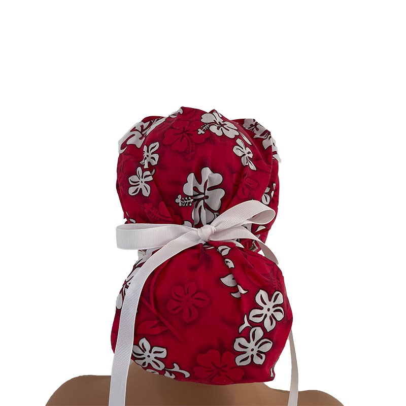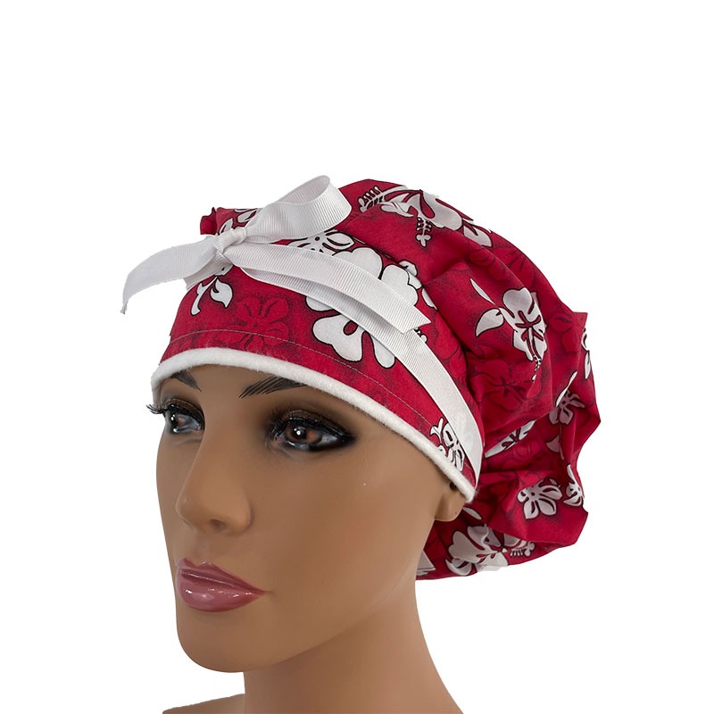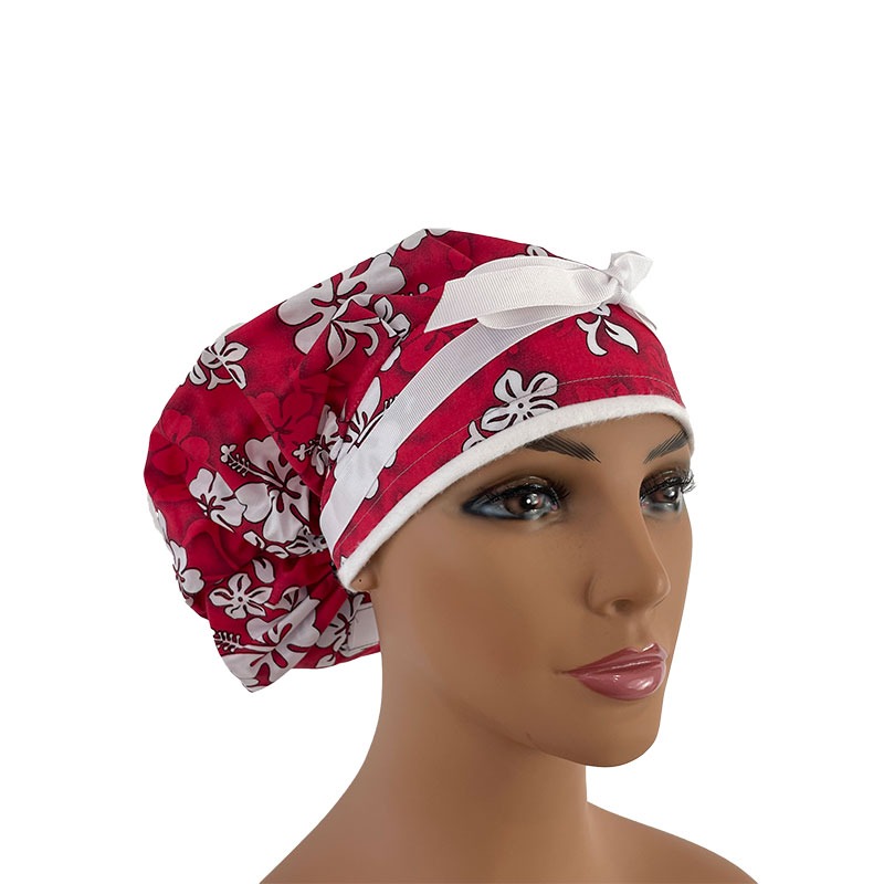 Bouffant Medical Scrub Cap – Bouffant Medical Scrub Cap – Tropic Gardens – Hibiscus Bouquet – Red