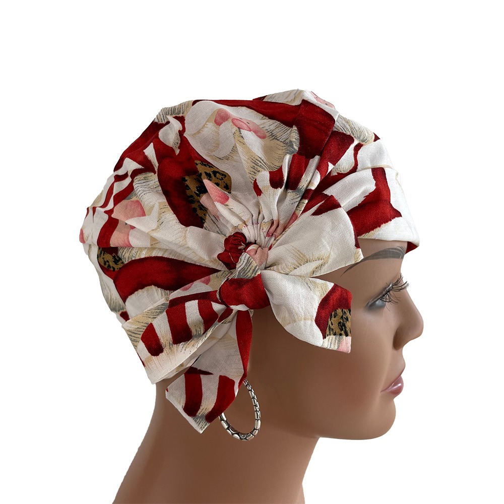 The best Chemo Cap available for women! Top quality. Elevate OR professionalism with our Chemo Scrub Hat, combining comfort, style, and functionality for healthcare pros. Adjustable, stylish, and easy to clean. Make a statement in the operating room. 100% cotton fabric.