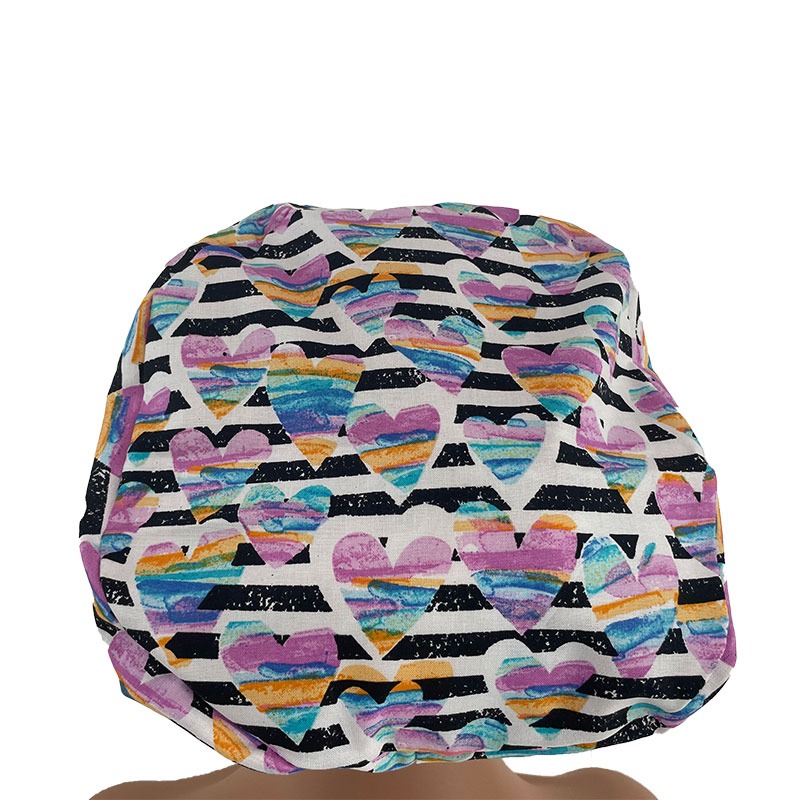 European Scrub Cap – Hearts and Stripes – (WITH RIBBON,OR WHITOUT)