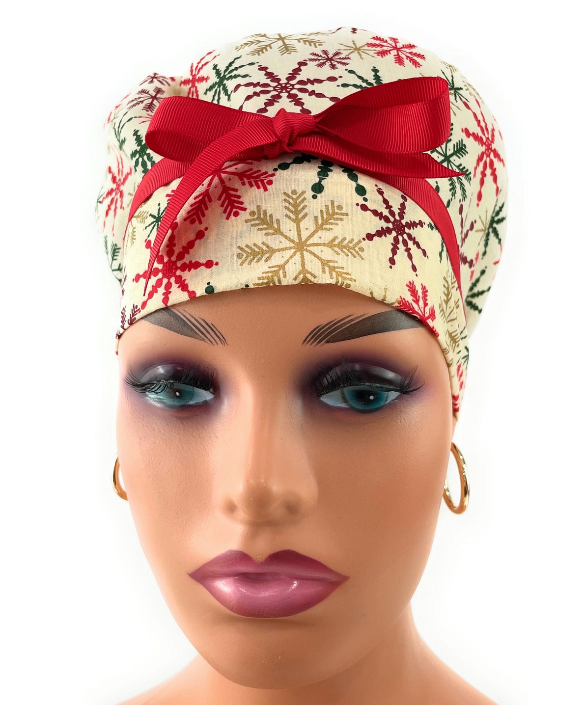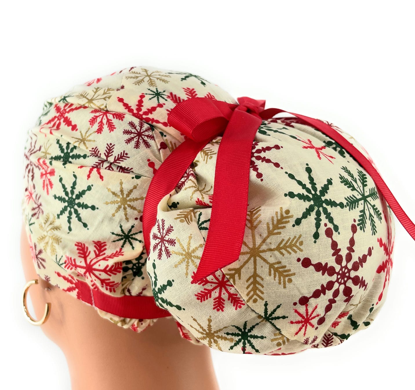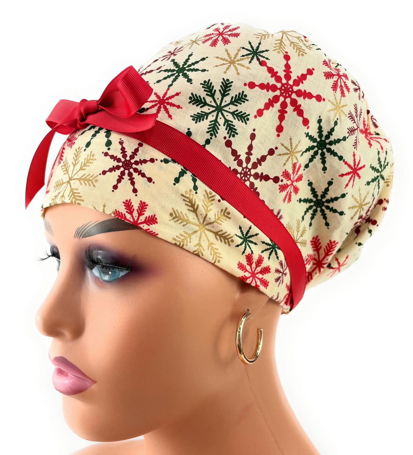 European Style Scrub Cap (Grosgrain Ribbon) – Colorful Snowflakes