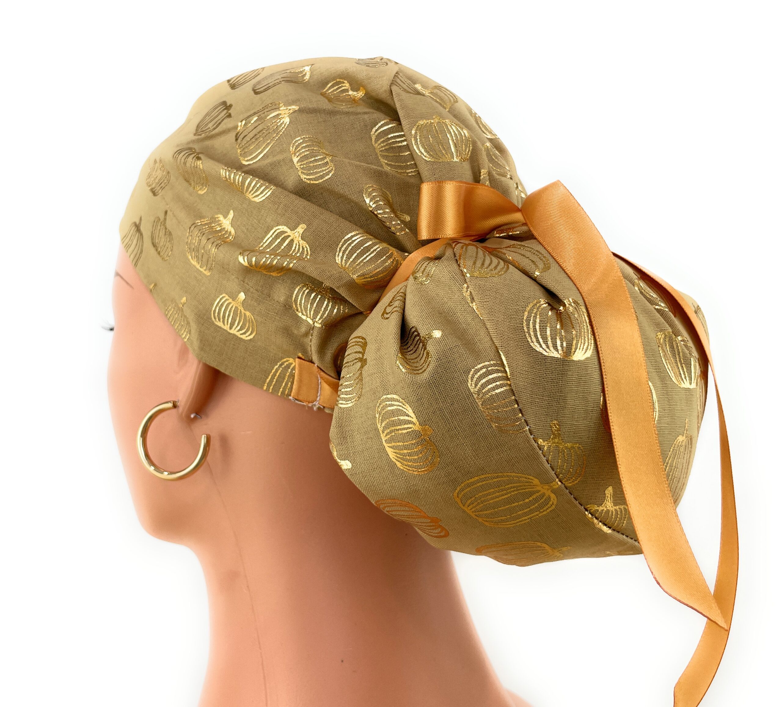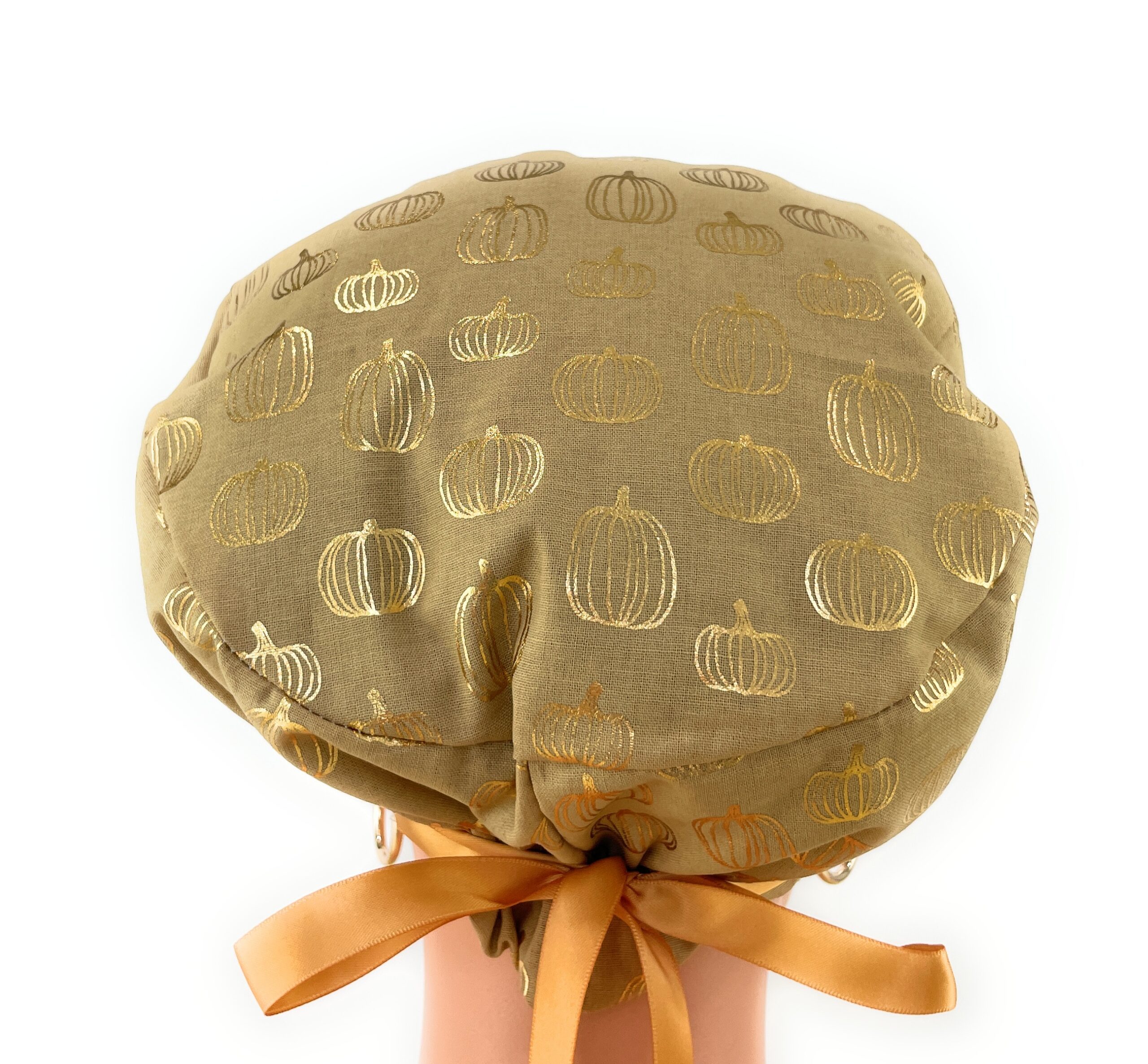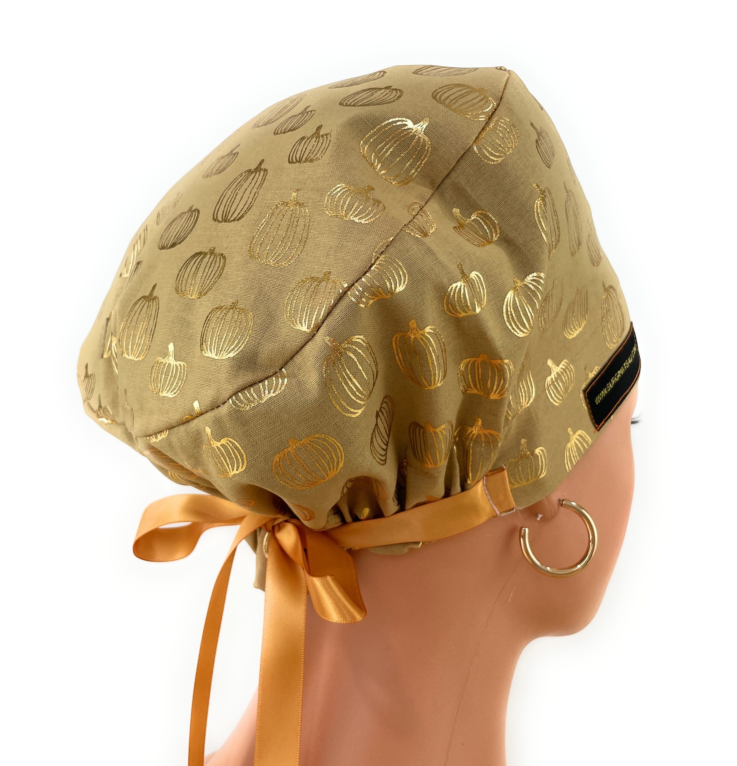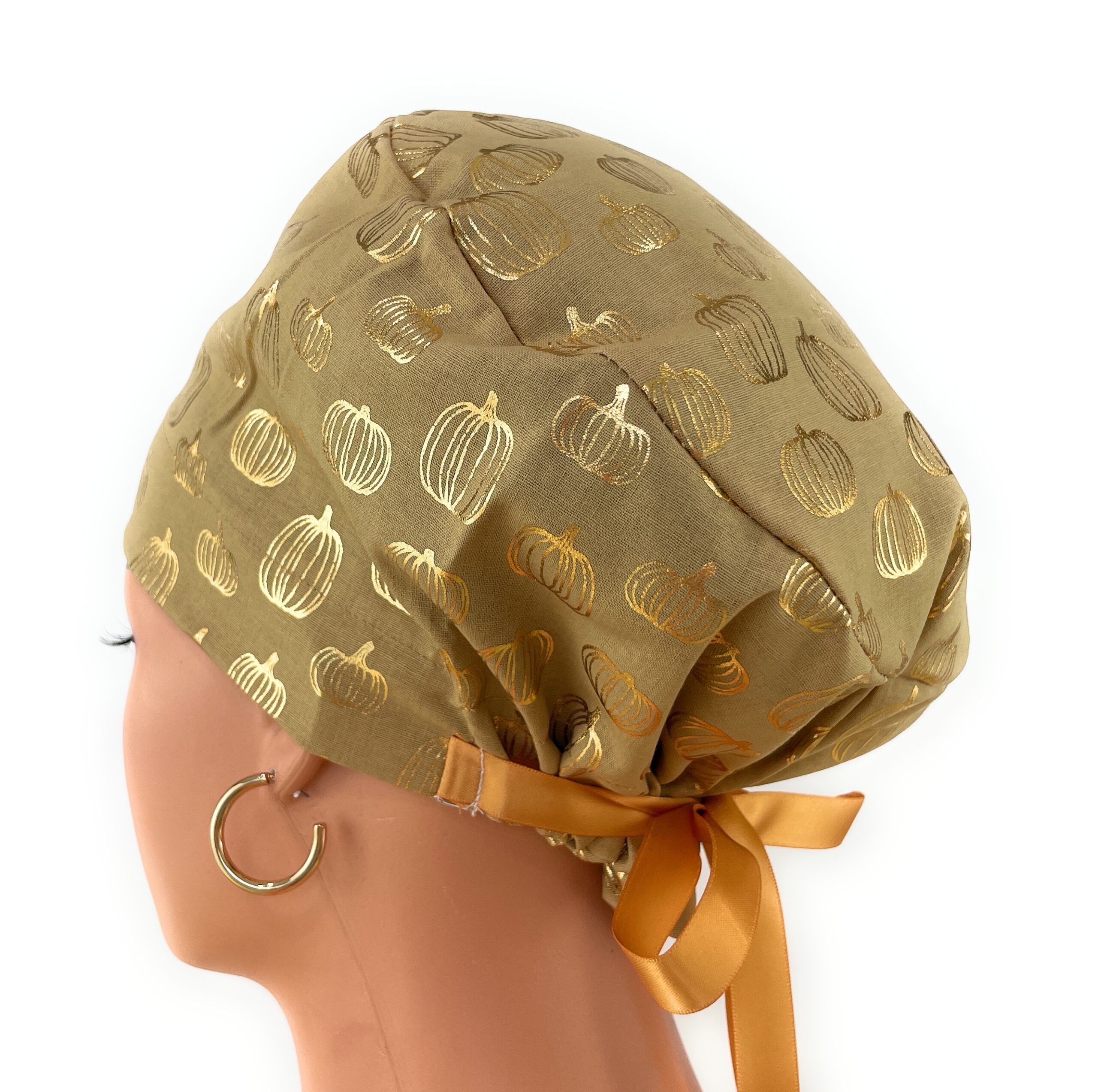 European Style Scrub Cap – (Grosgrain Ribbon) – Golden Pumpkin