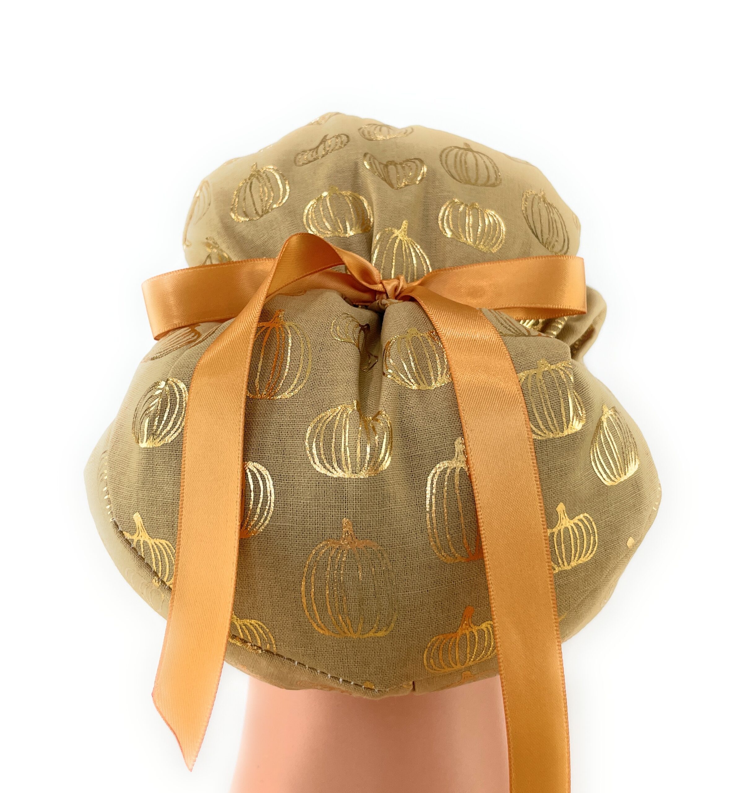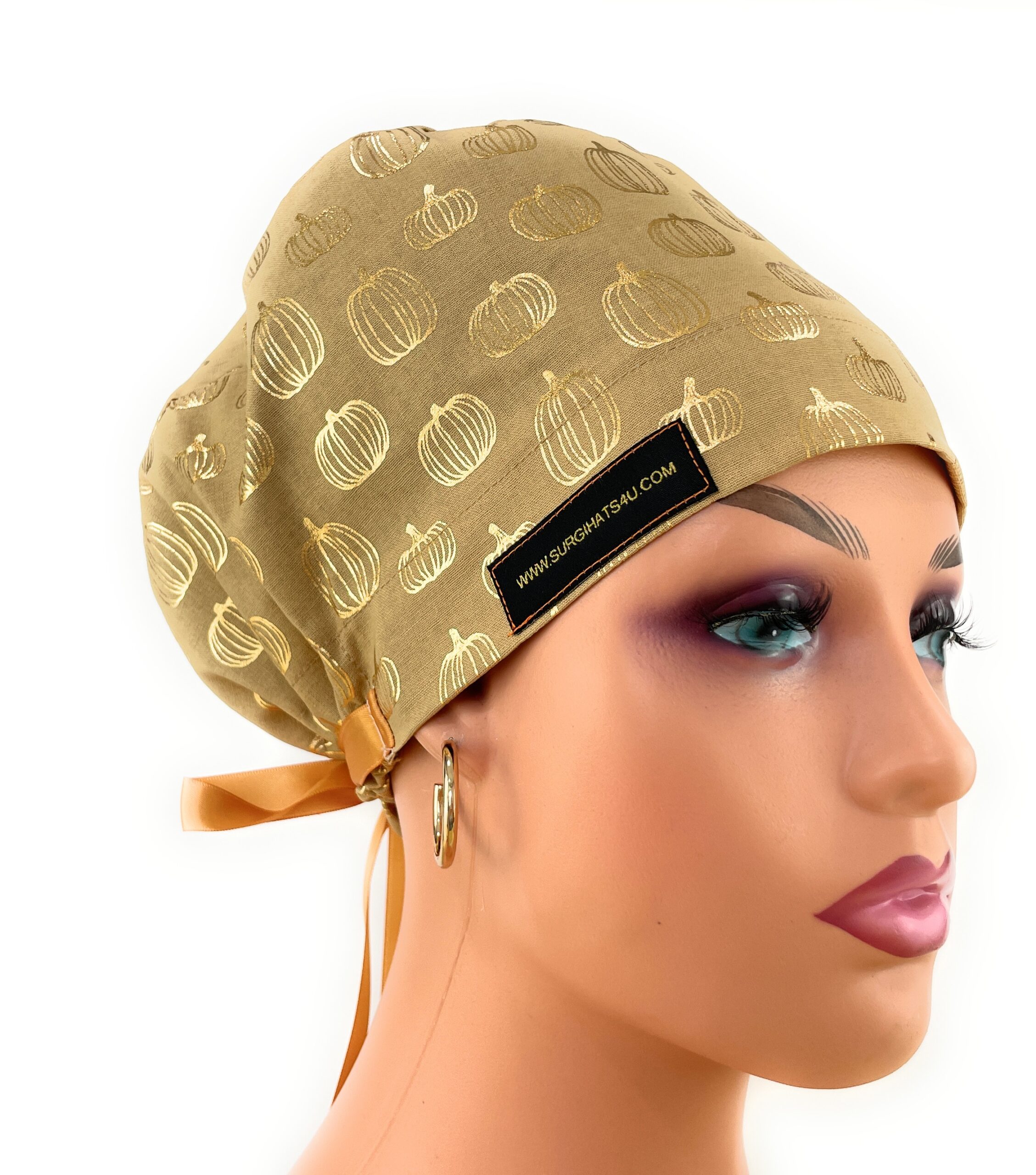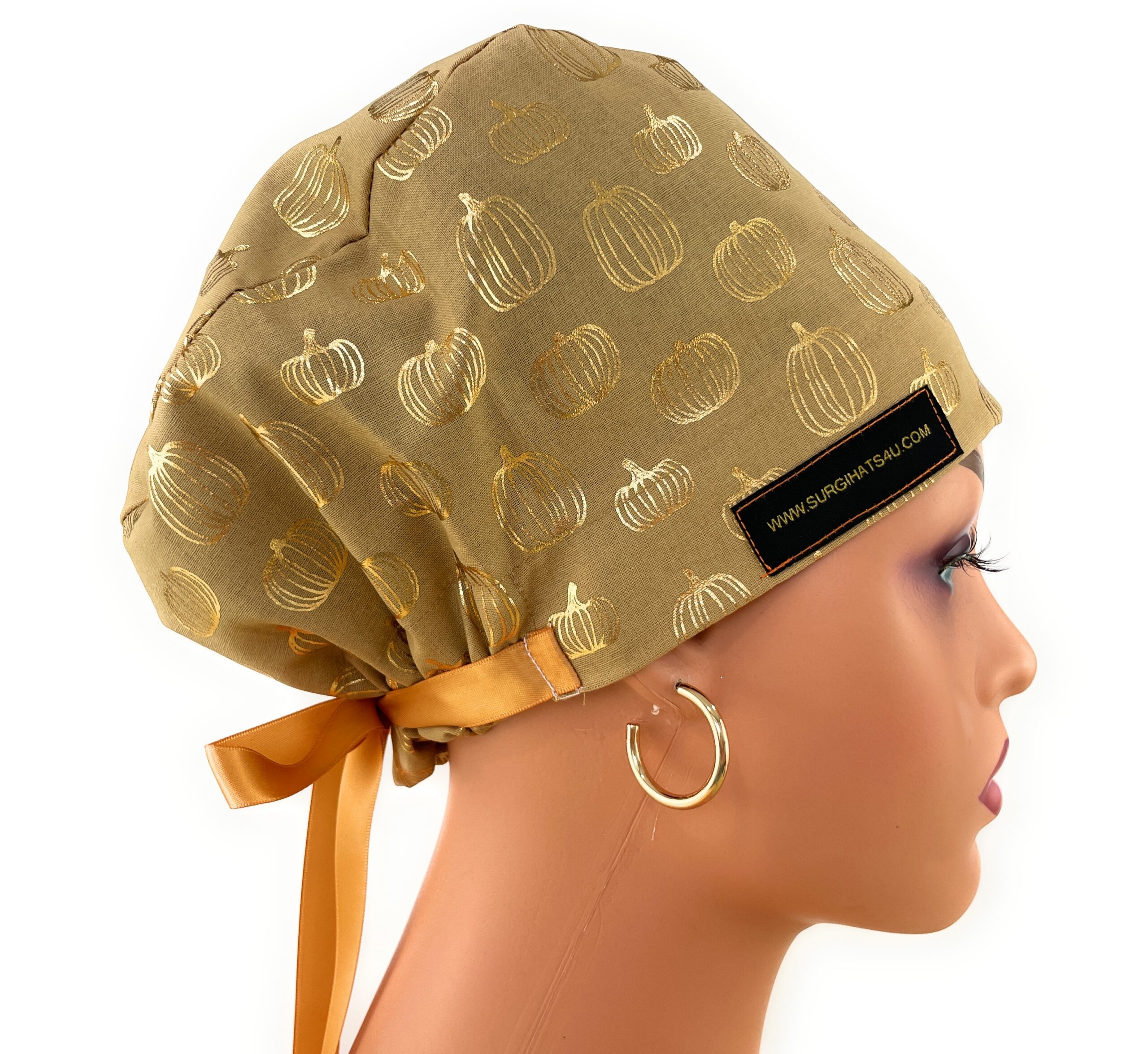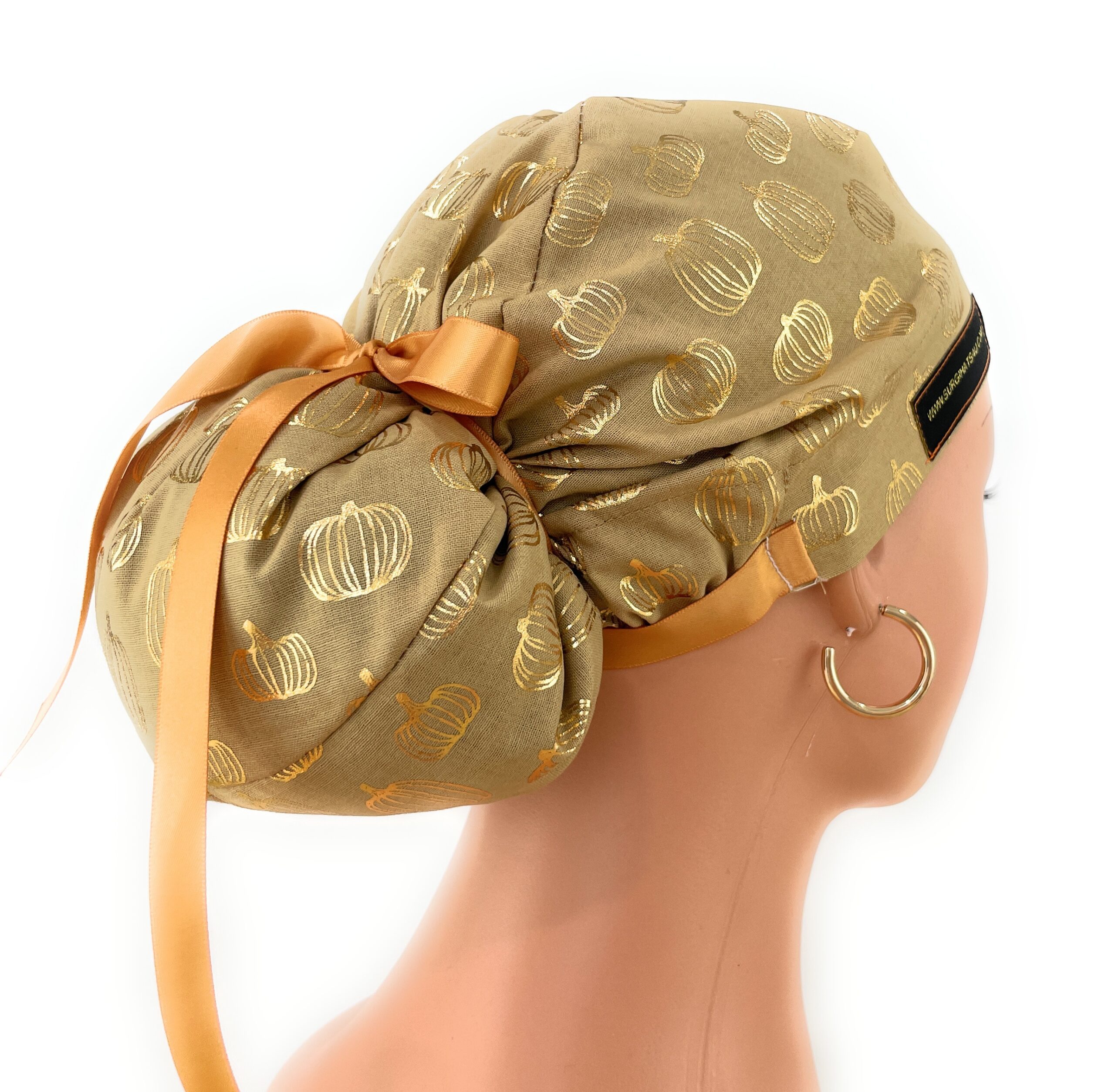 European Style Scrub Cap – (Grosgrain Ribbon) – Golden Pumpkin