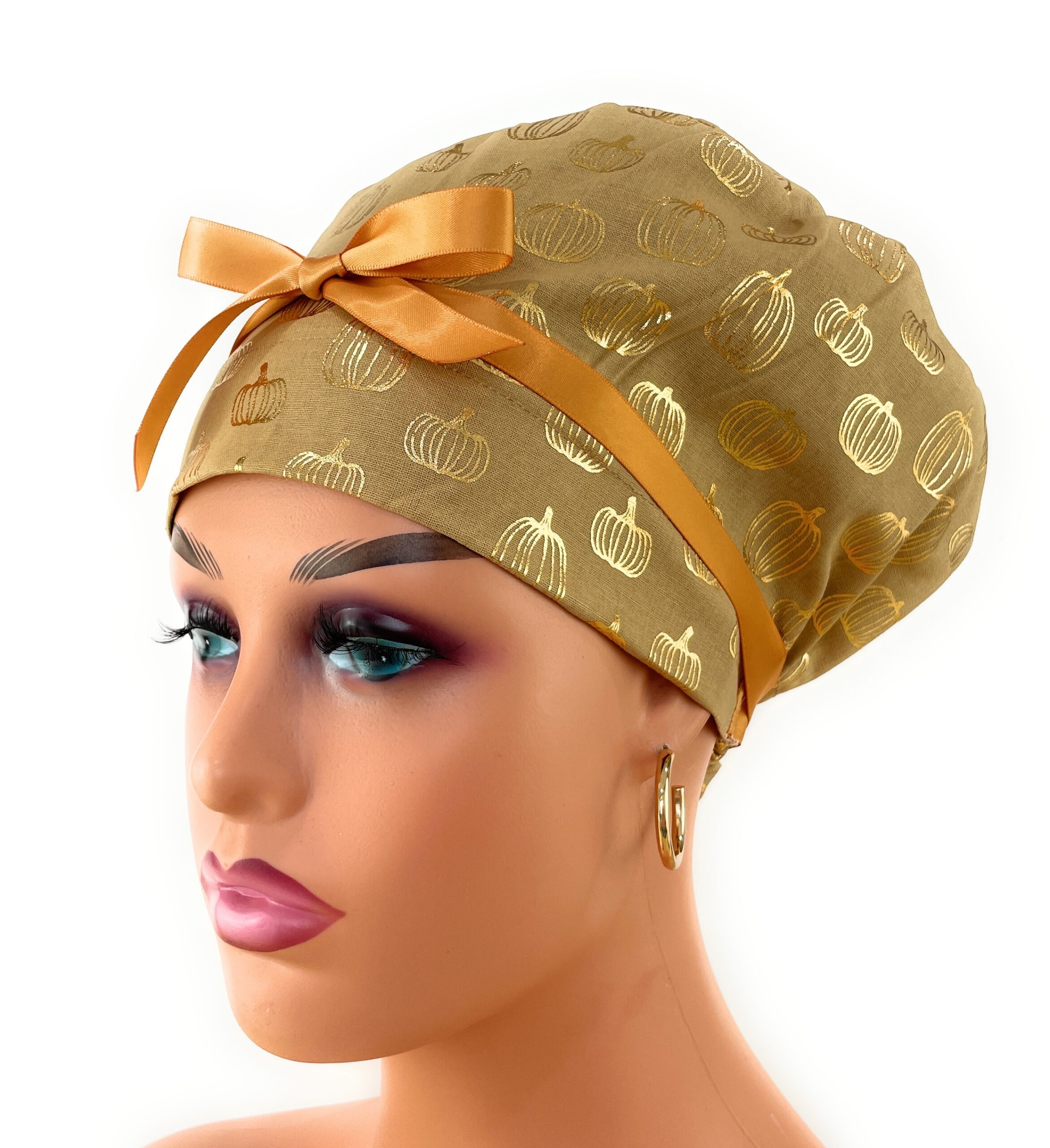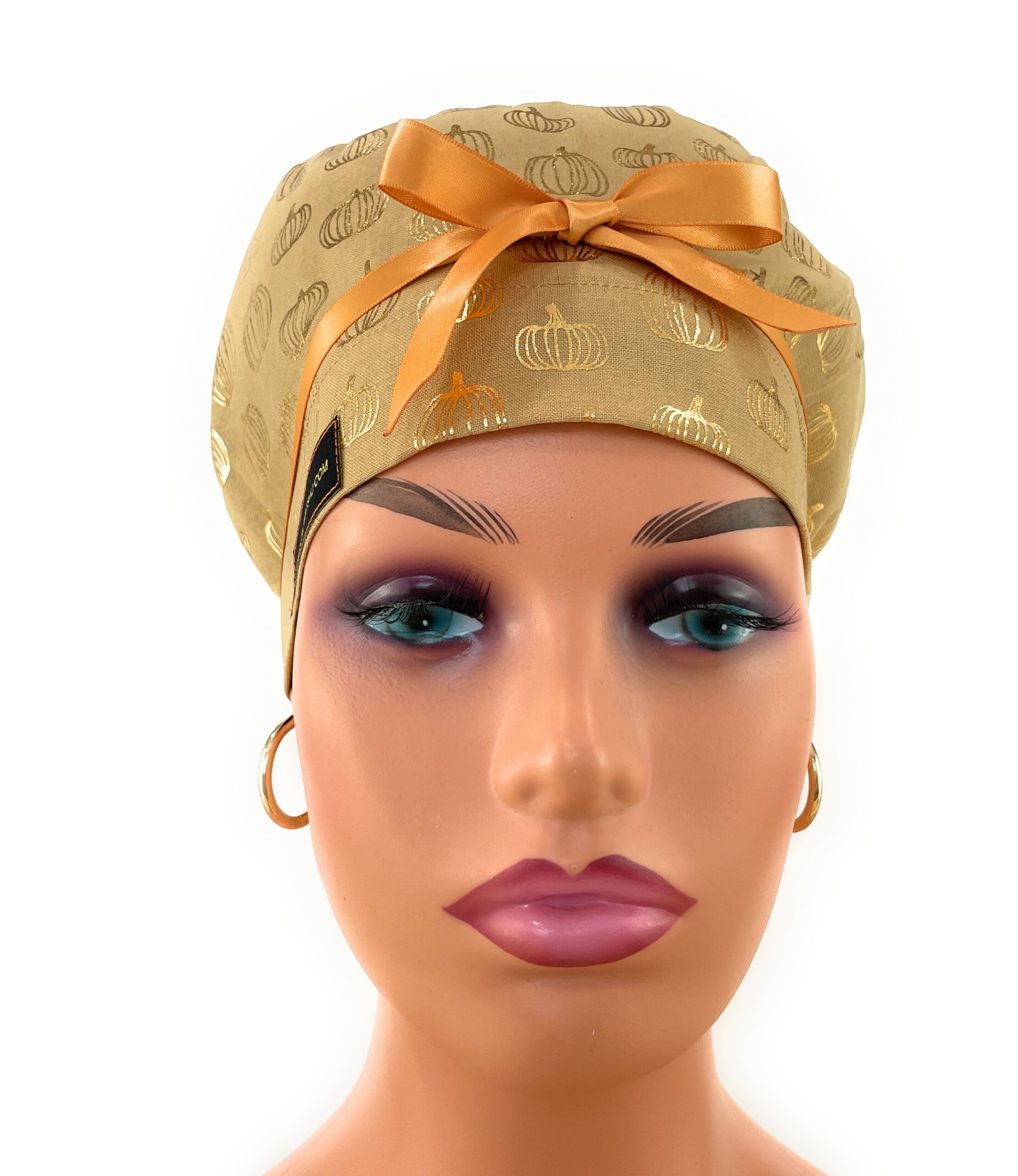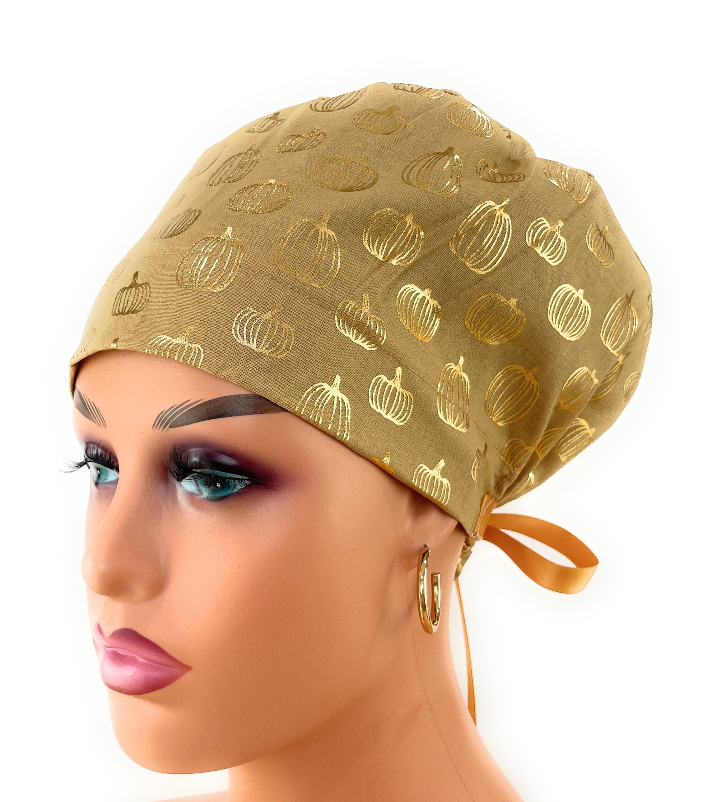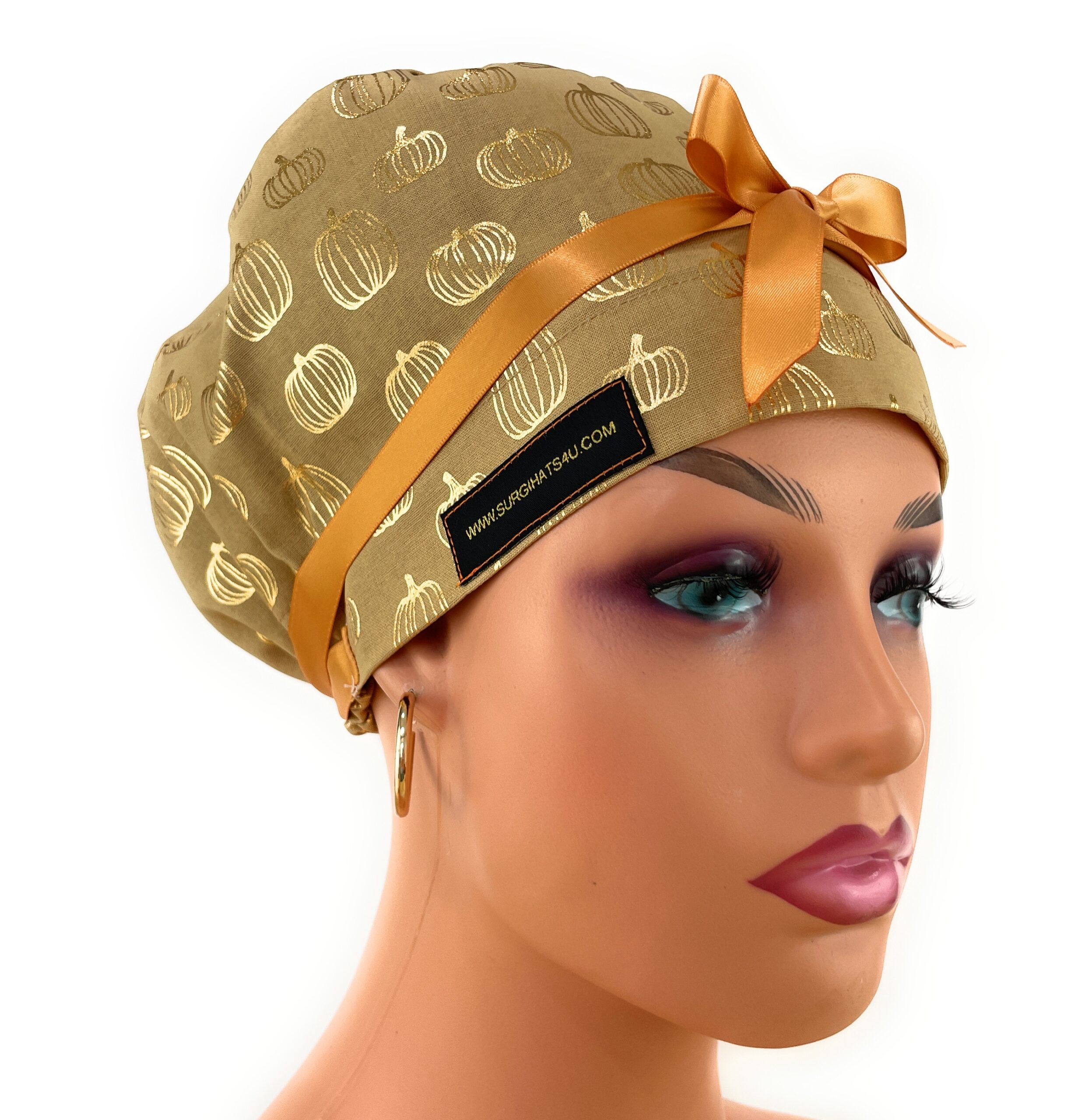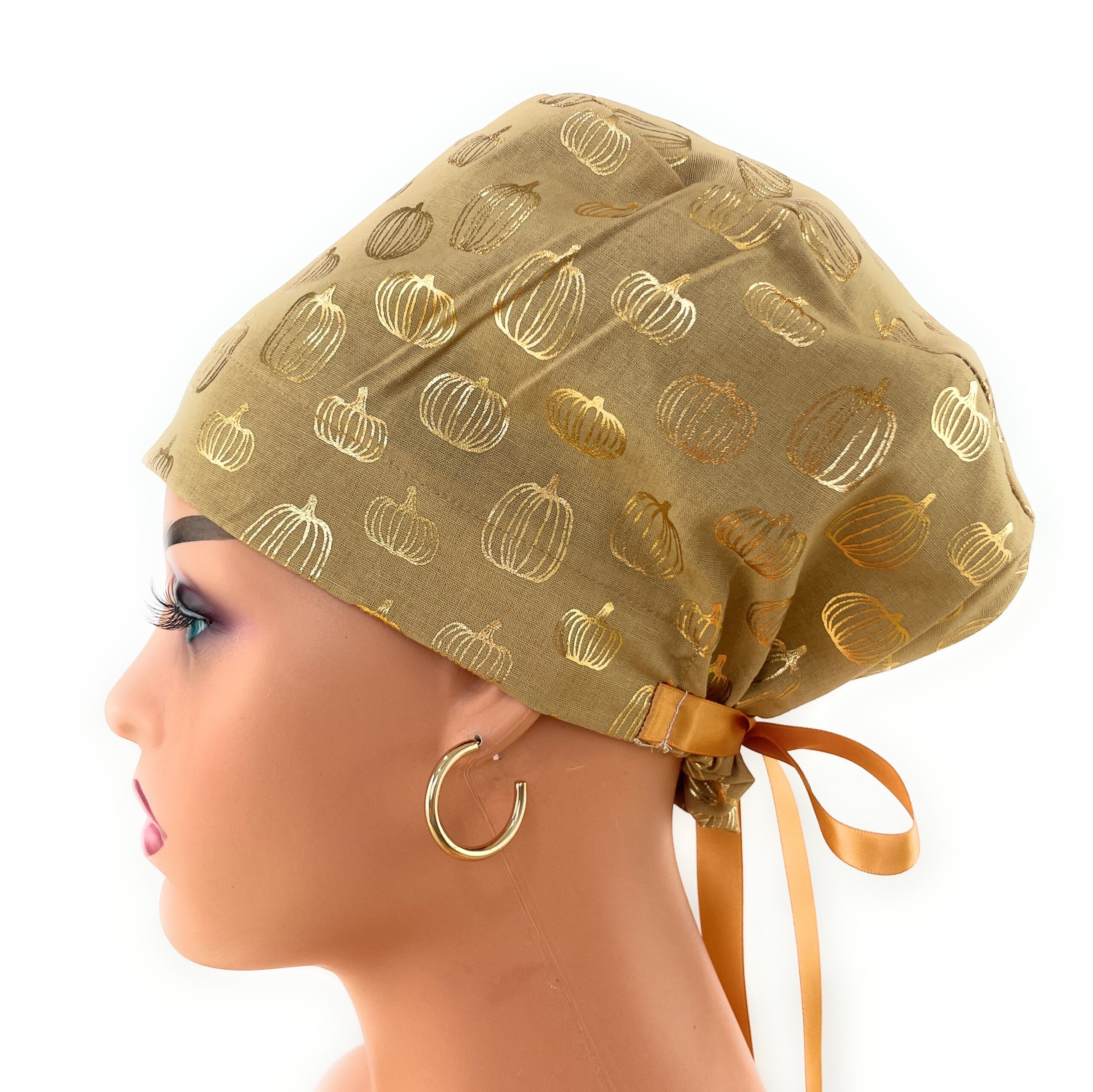 European Style Scrub Cap – (Grosgrain Ribbon) – Golden Pumpkin