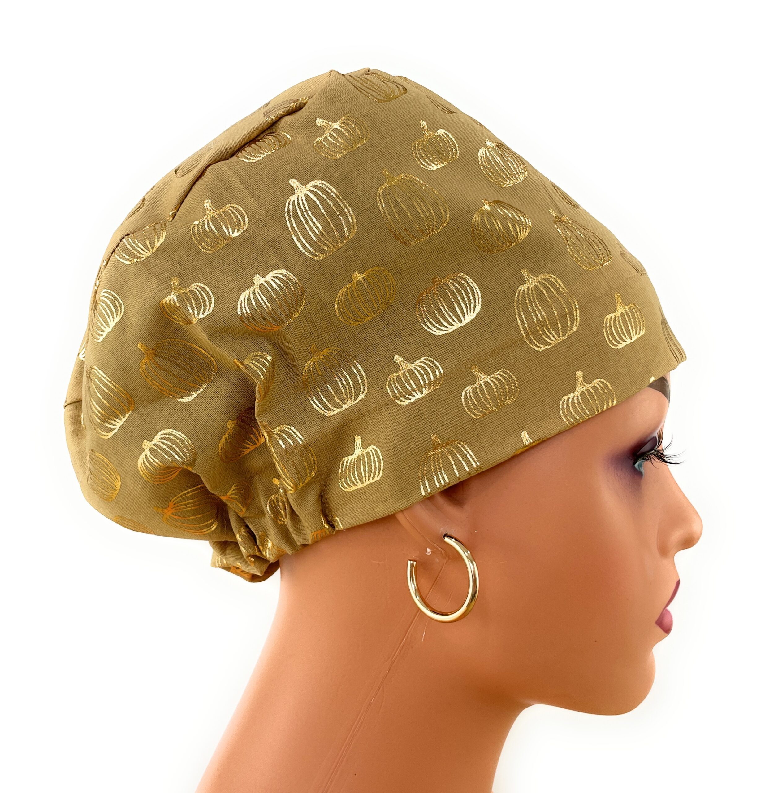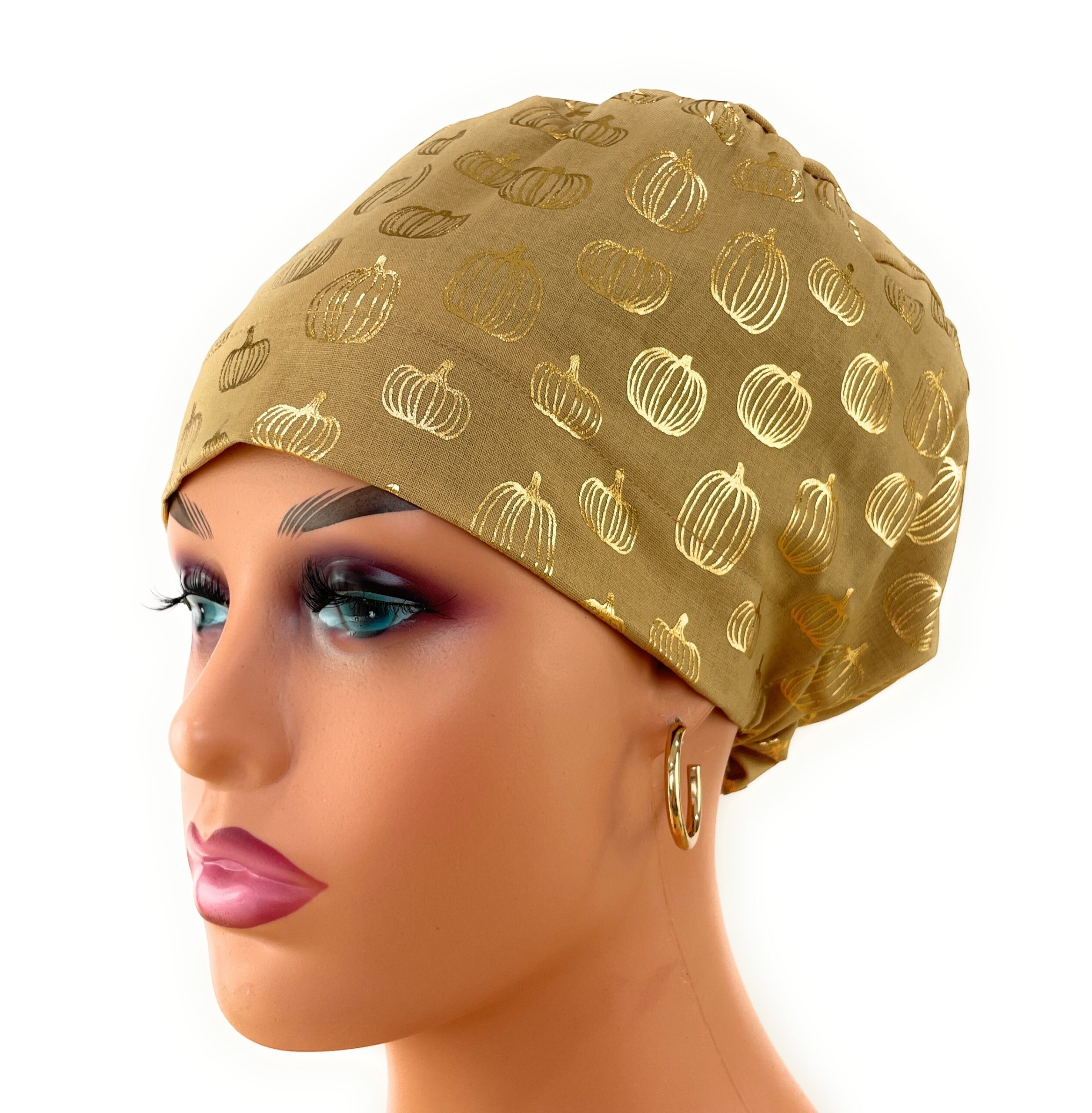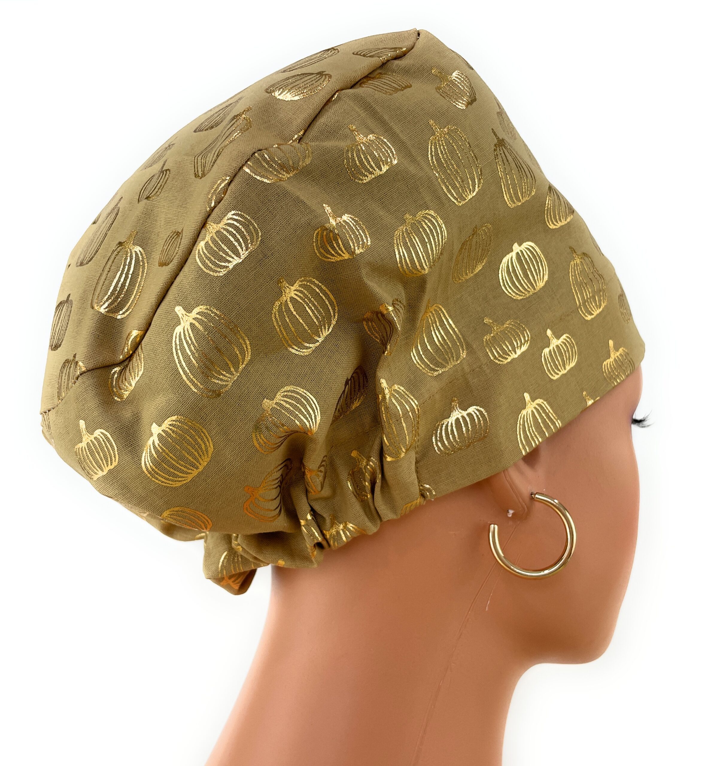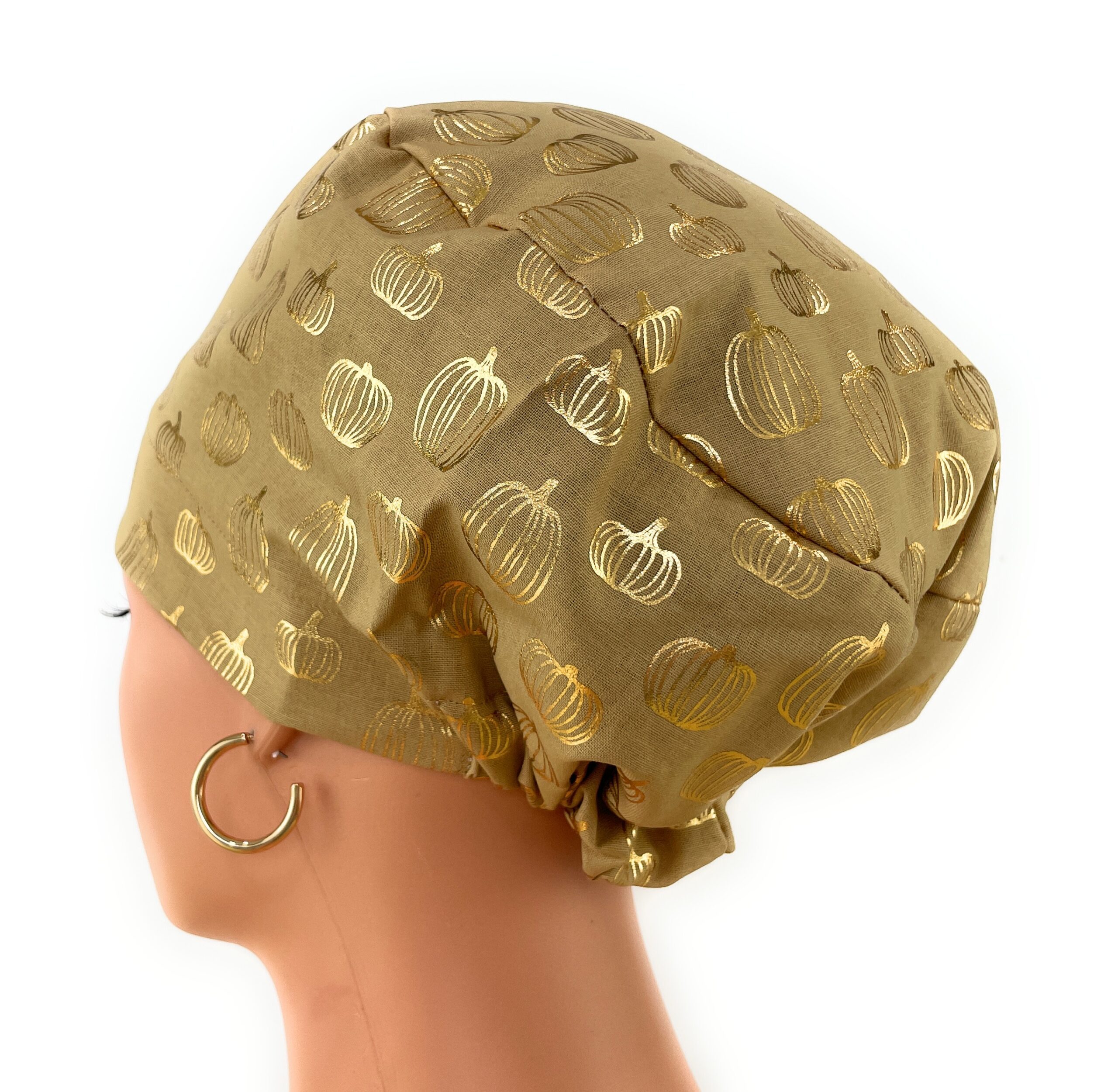 European Style Scrub Cap – (Grosgrain Ribbon) – Golden Pumpkin