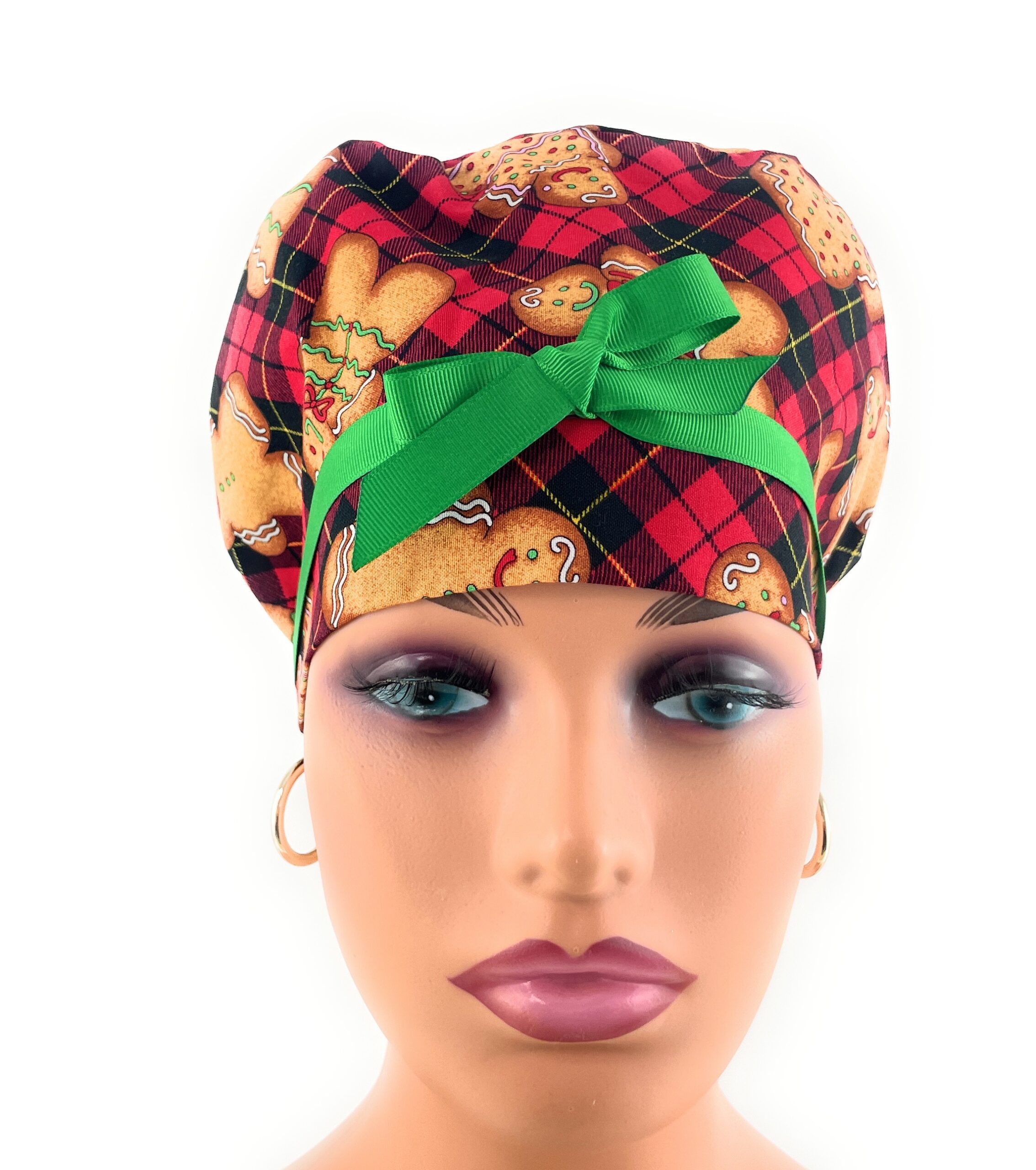 European Style Scrub Cap – (Grosgrain Ribbon) – Gingerbread Christmas Cookies