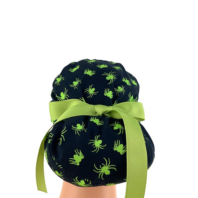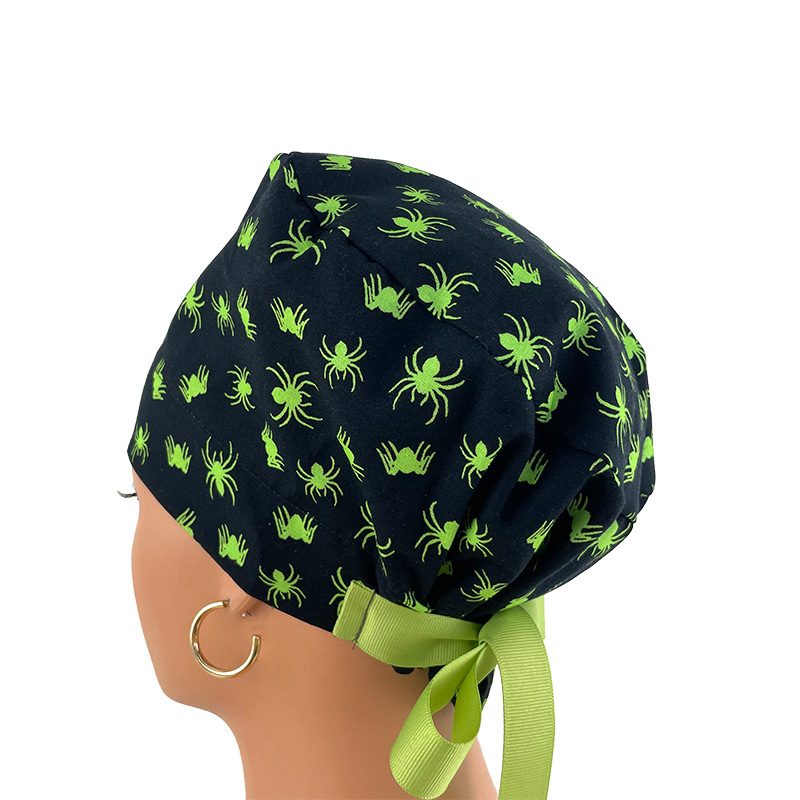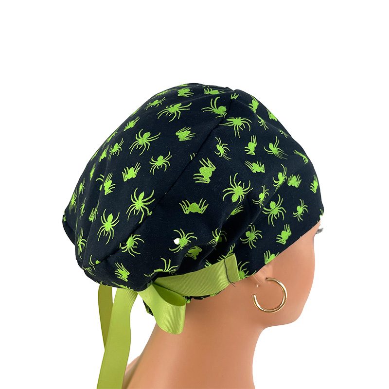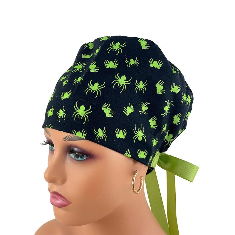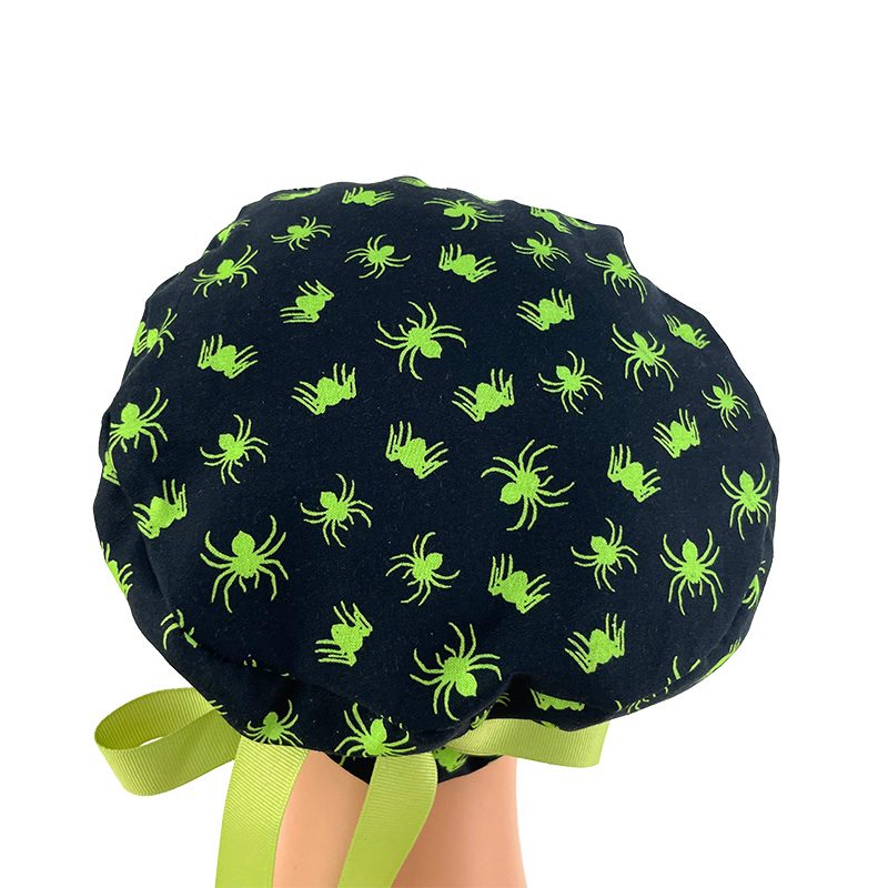 European Style Scrub Cap (Grosgrain Ribbon) – Glow in The Dark/Halloween Spiders