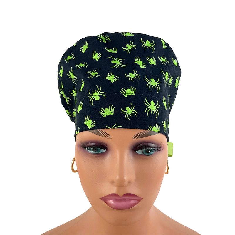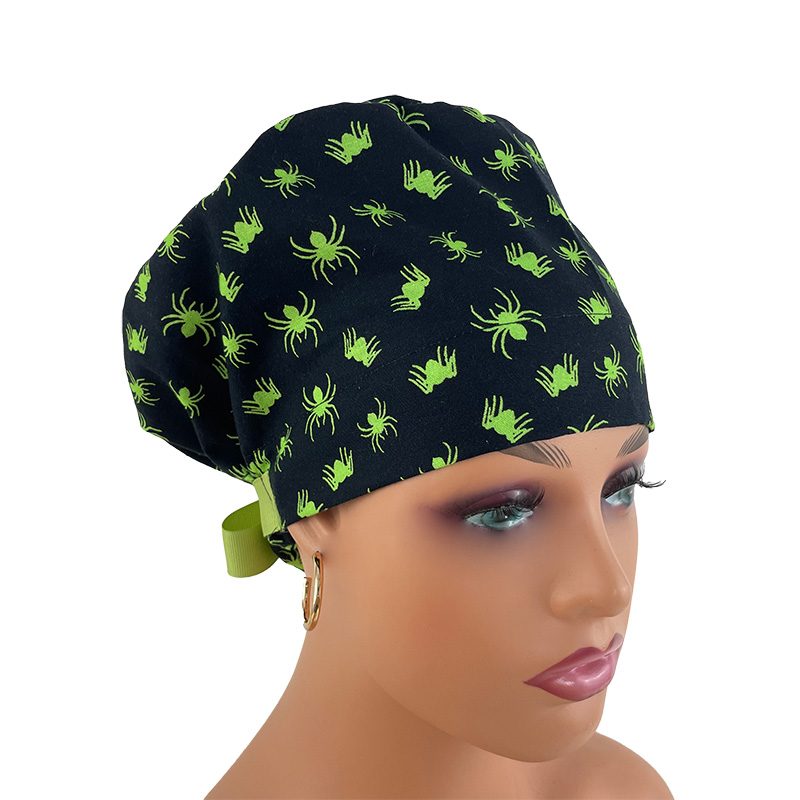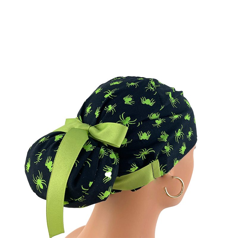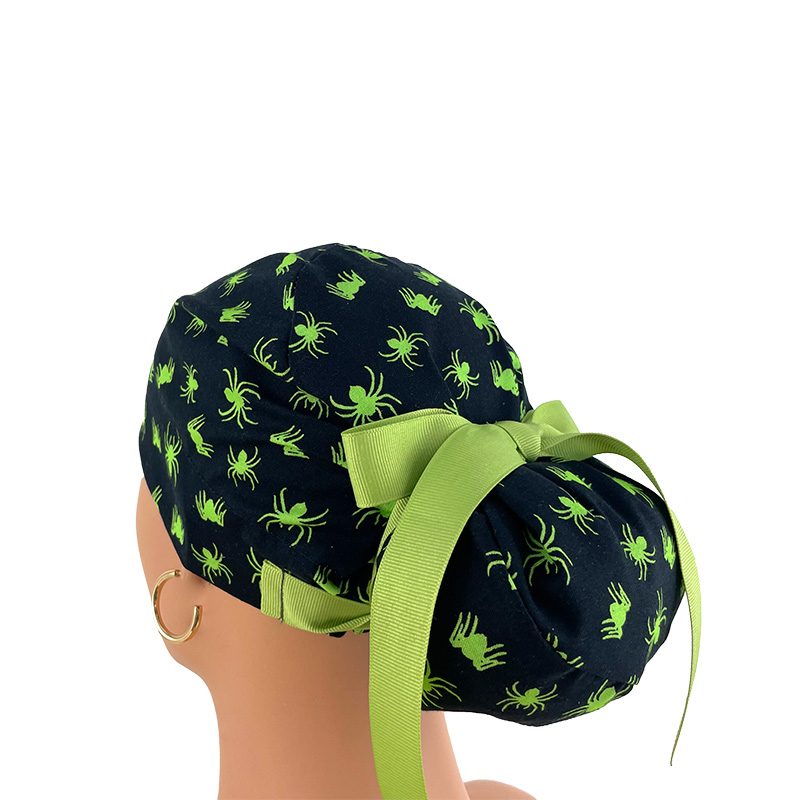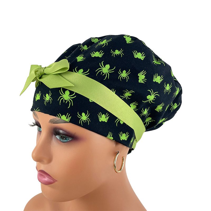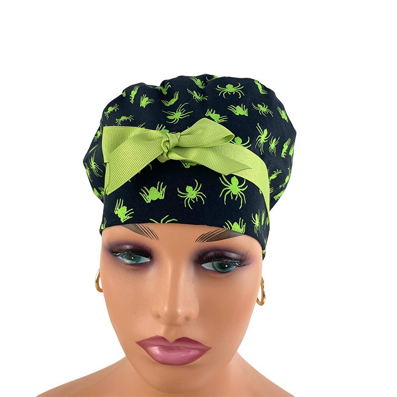 European Style Scrub Cap (Grosgrain Ribbon) – Glow in The Dark/Halloween Spiders