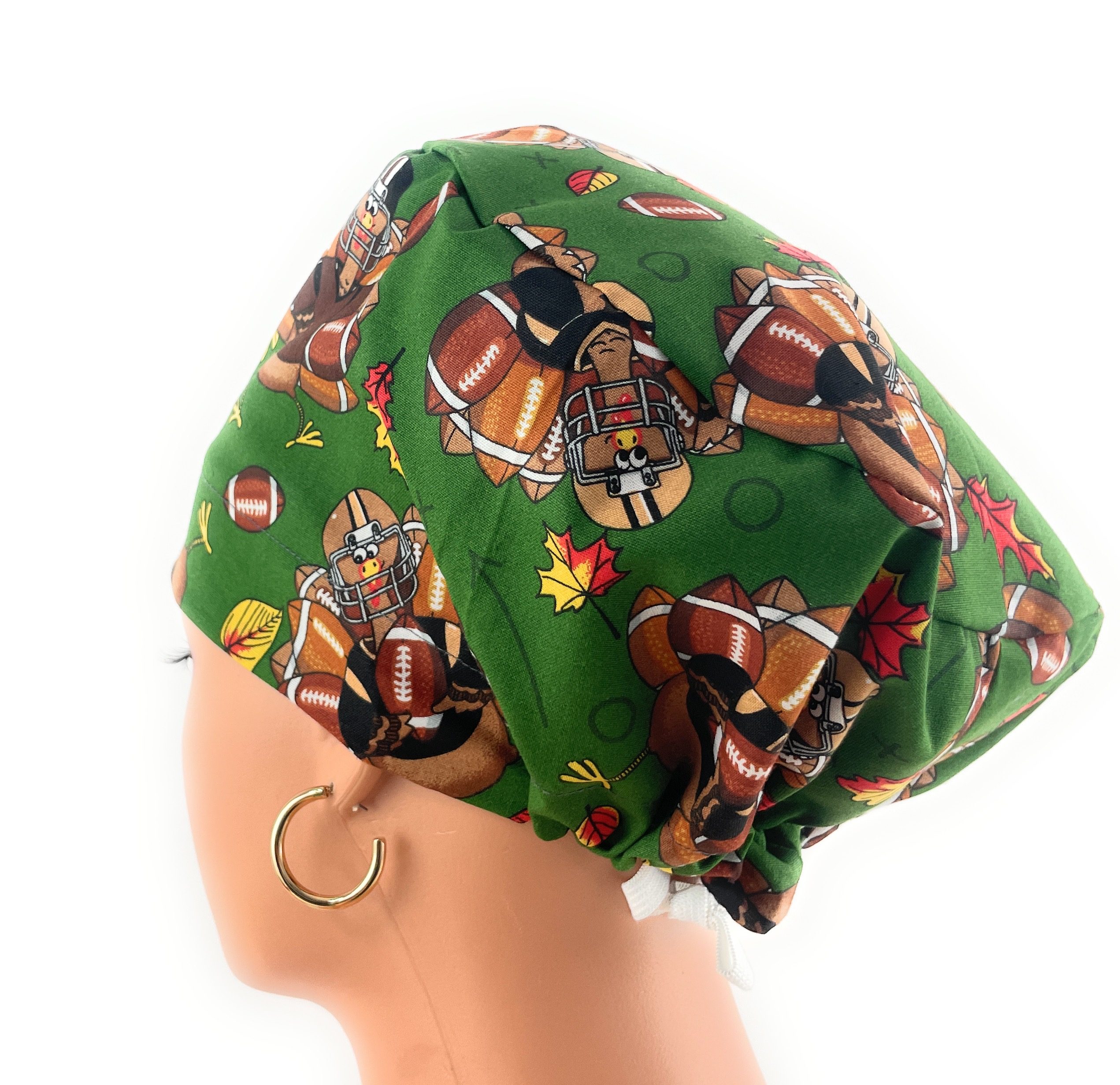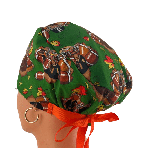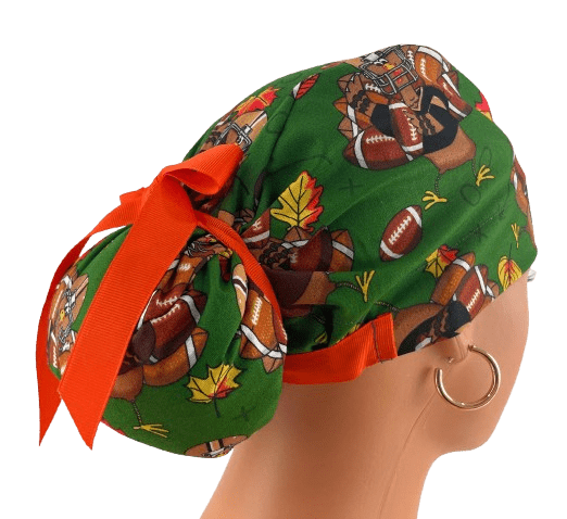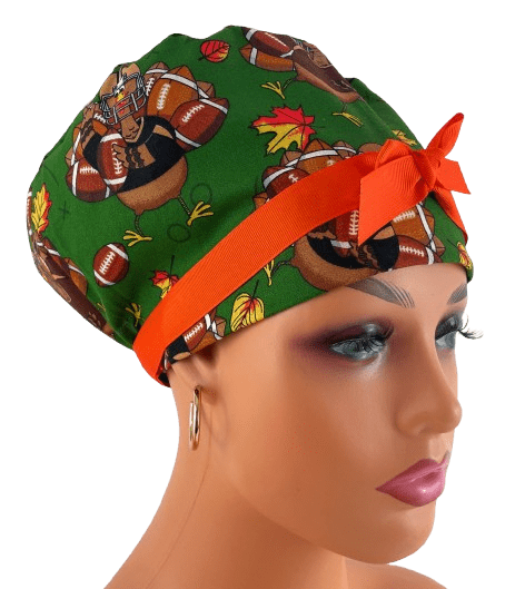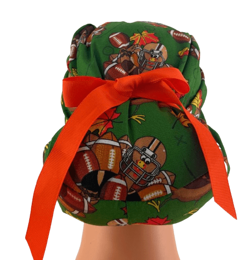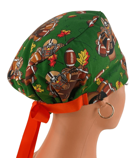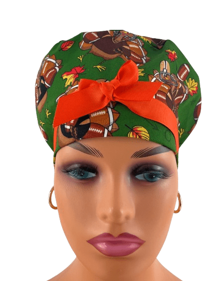 European Style Scrub Cap – (Grosgrain Ribbon) – (No Ribbon) – Fall Football Turkeys