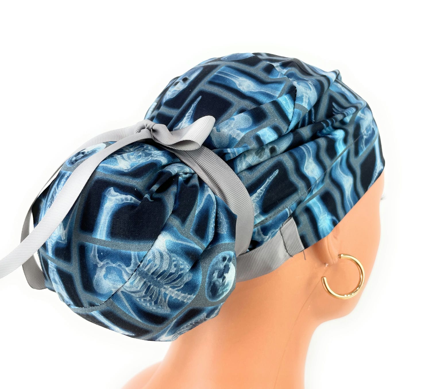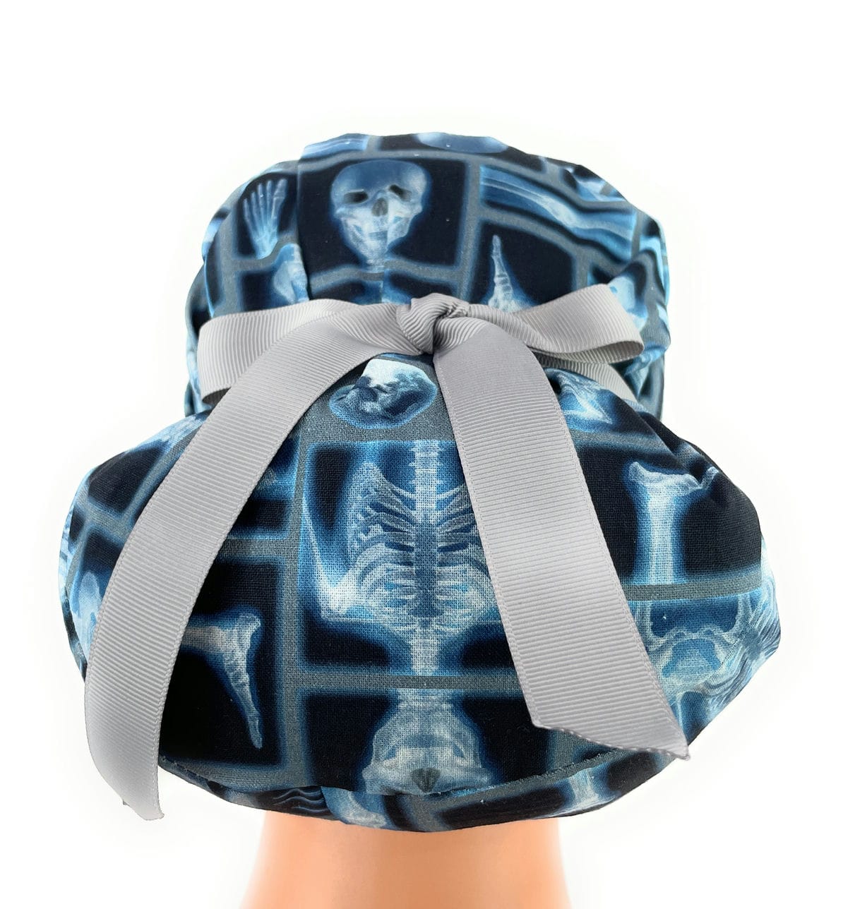European Style Scrub Cap (Grosgrain Ribbon) – Skeleton X-ray on Black Cotton Fabric