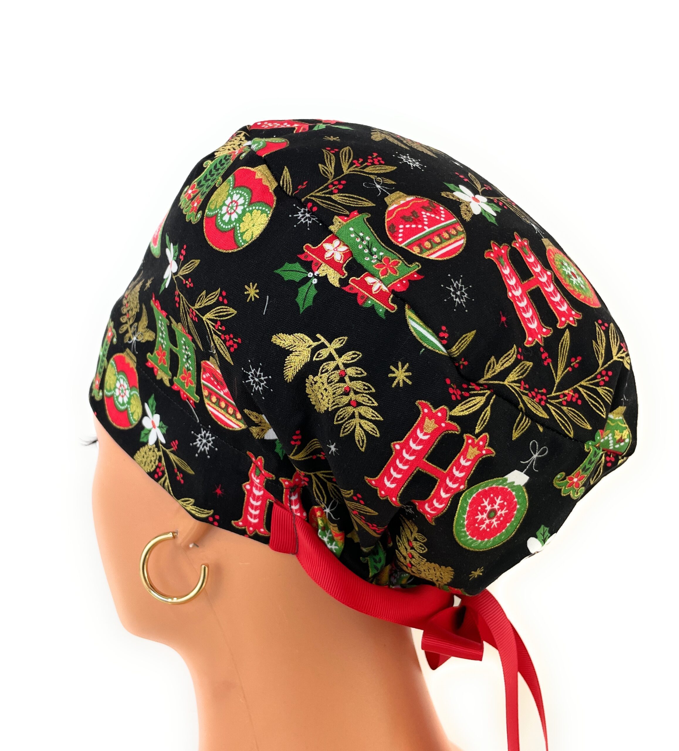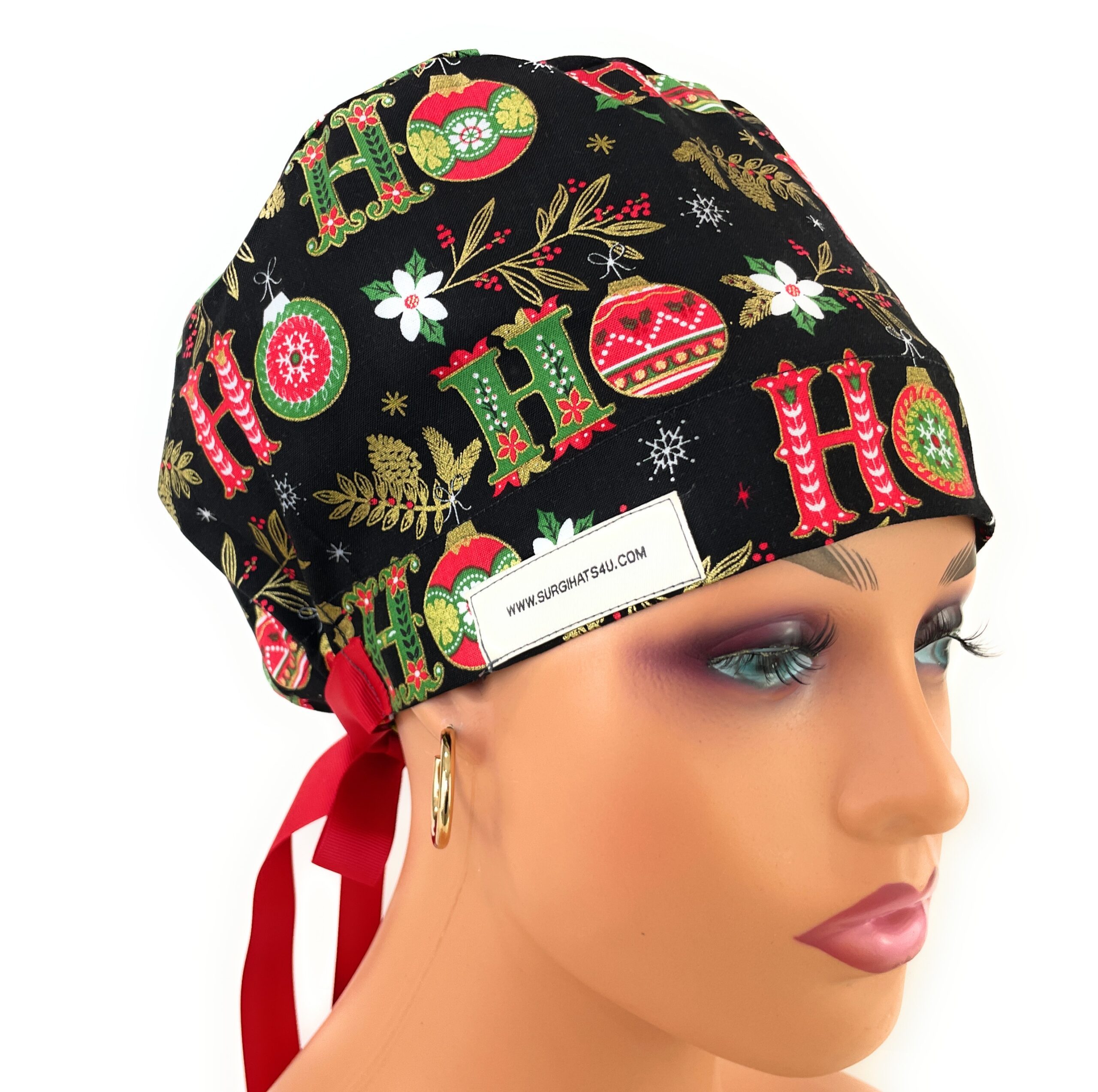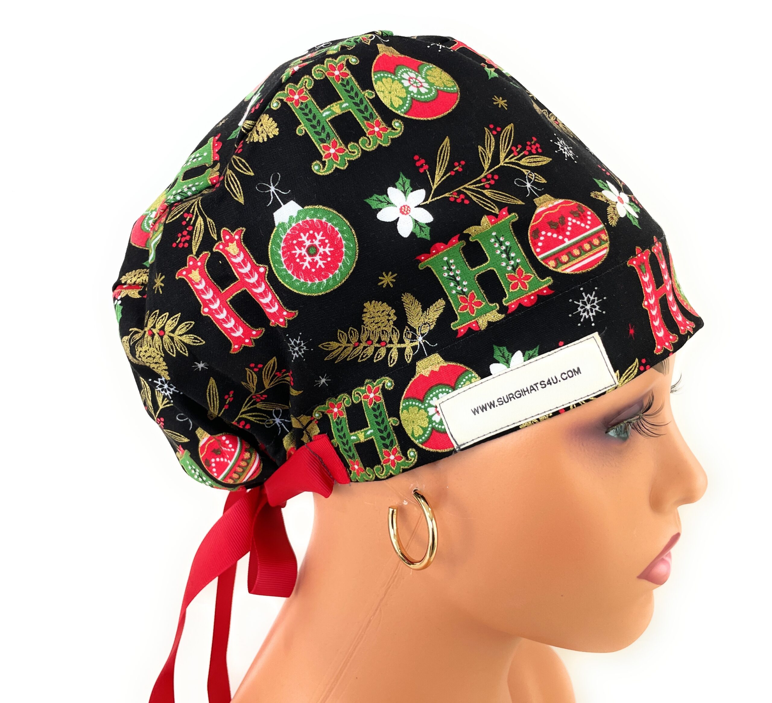 European Style Scrub Cap – (Grosgrain Ribbon)(No Ribbon)-HoHoHo – Holy Night