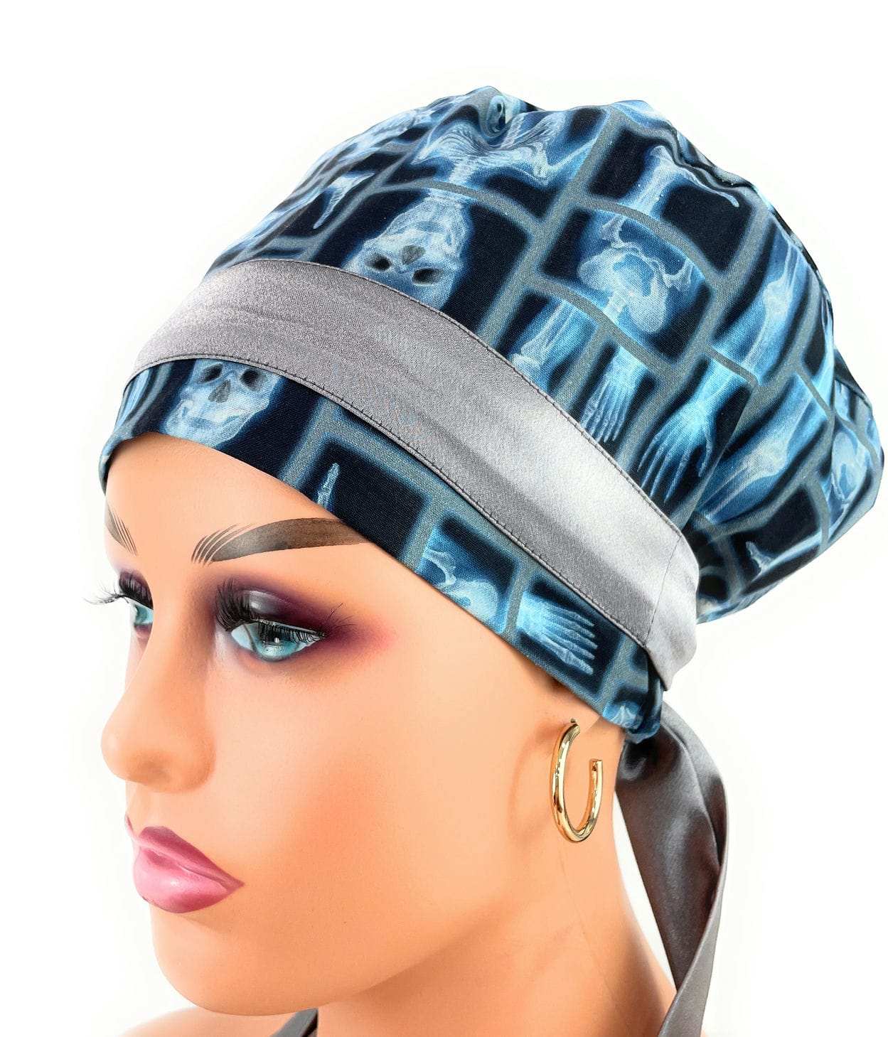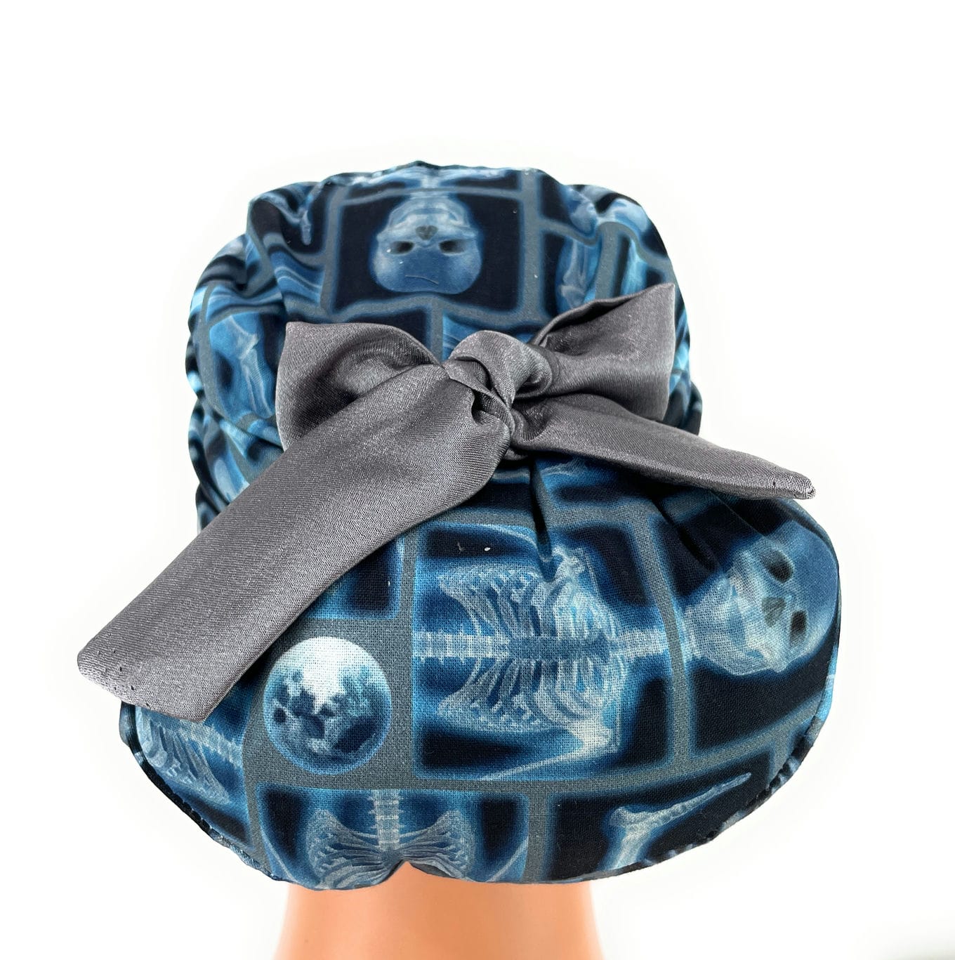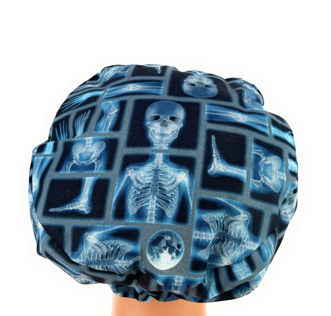 European Style Scrub Cap – (Sateen Ribbon) Skeleton X-ray on Black Cotton Fabric