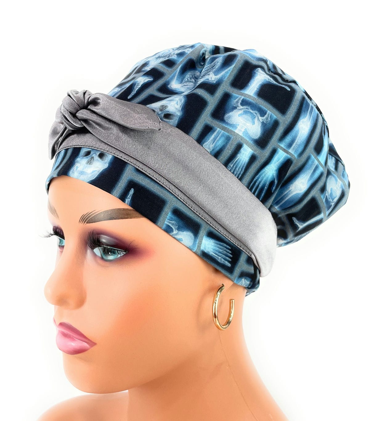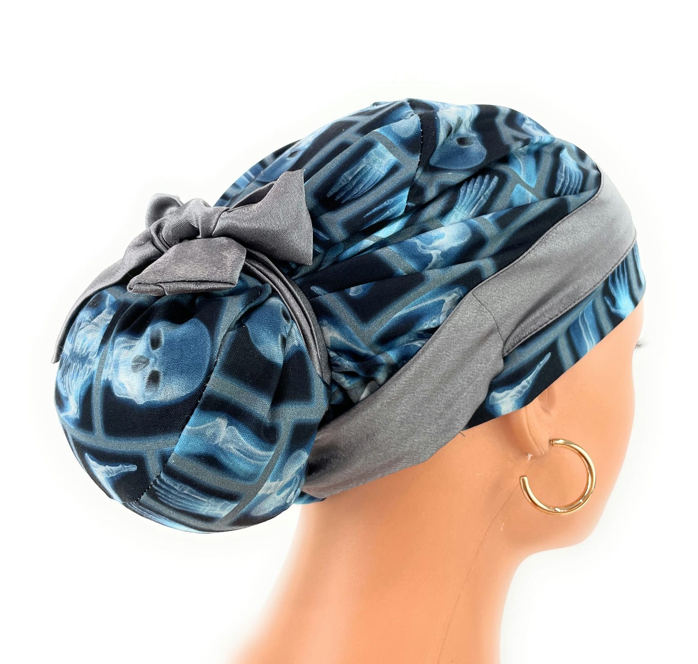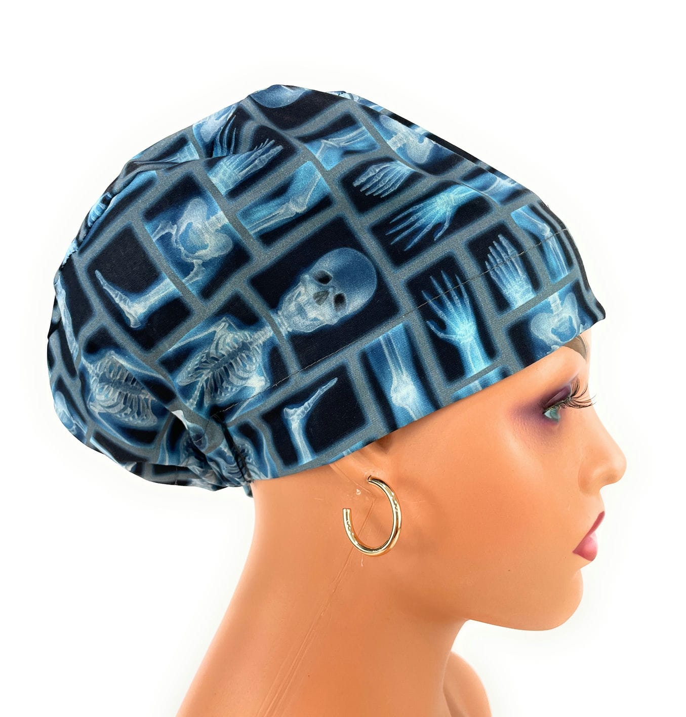 European Style Scrub Cap – (Sateen Ribbon) Skeleton X-ray on Black Cotton Fabric