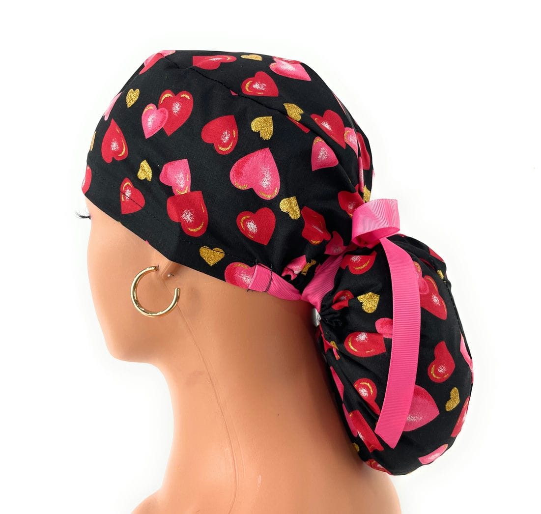 Ponytail Medical Scrub Cap – Assorted Patterns – Valentines