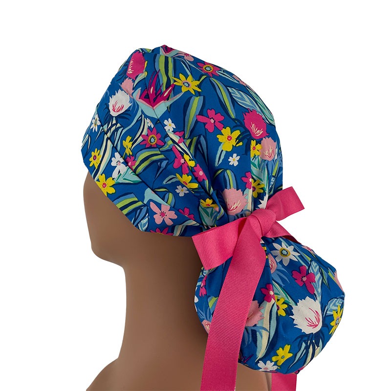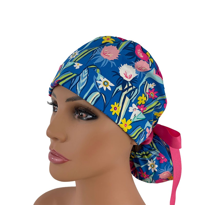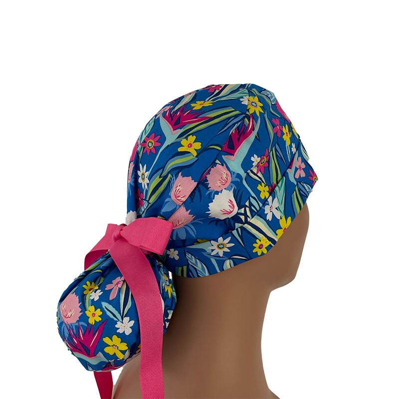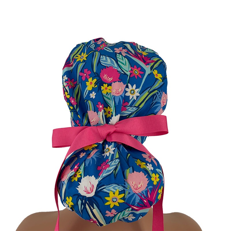 Turn Up Ponytail Medical Scrub Cap – Tropic Like It’s Hot in Multi
