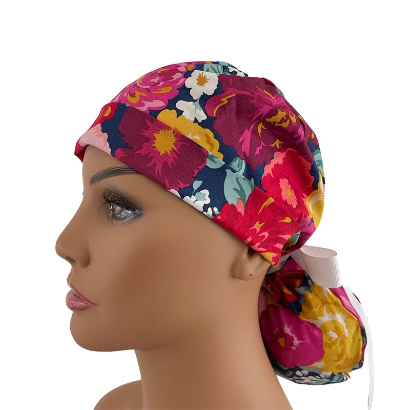 Turn Up Ponytail Medical Scrub Cap – Bold Packed Floral