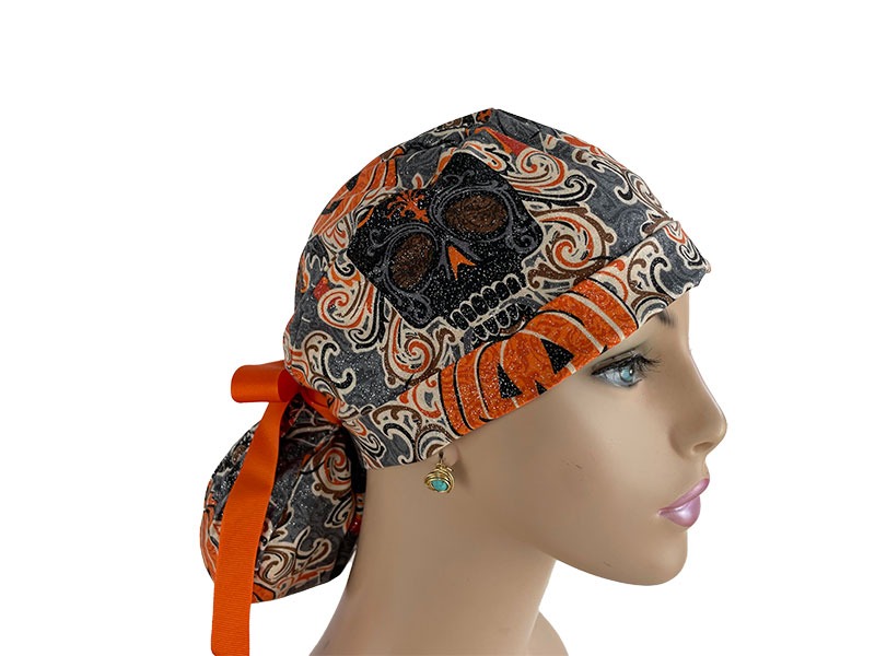 Turn Up Ponytail Medical Scrub Cap – The Haunting Pumpkins (It has glitters)