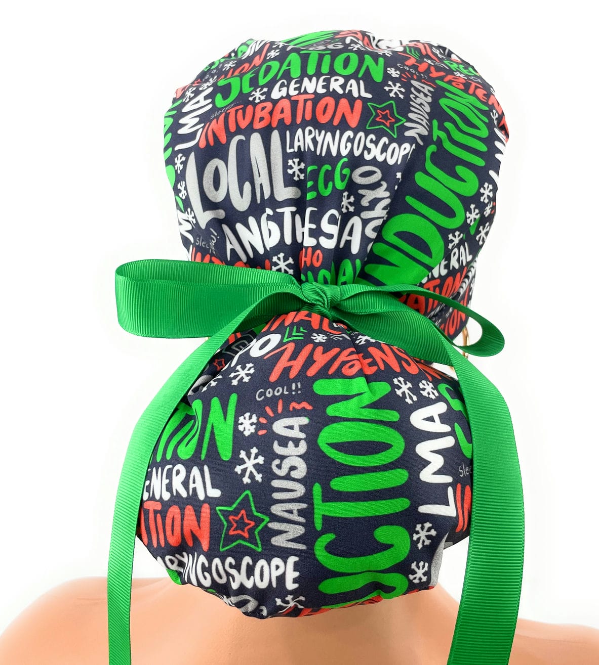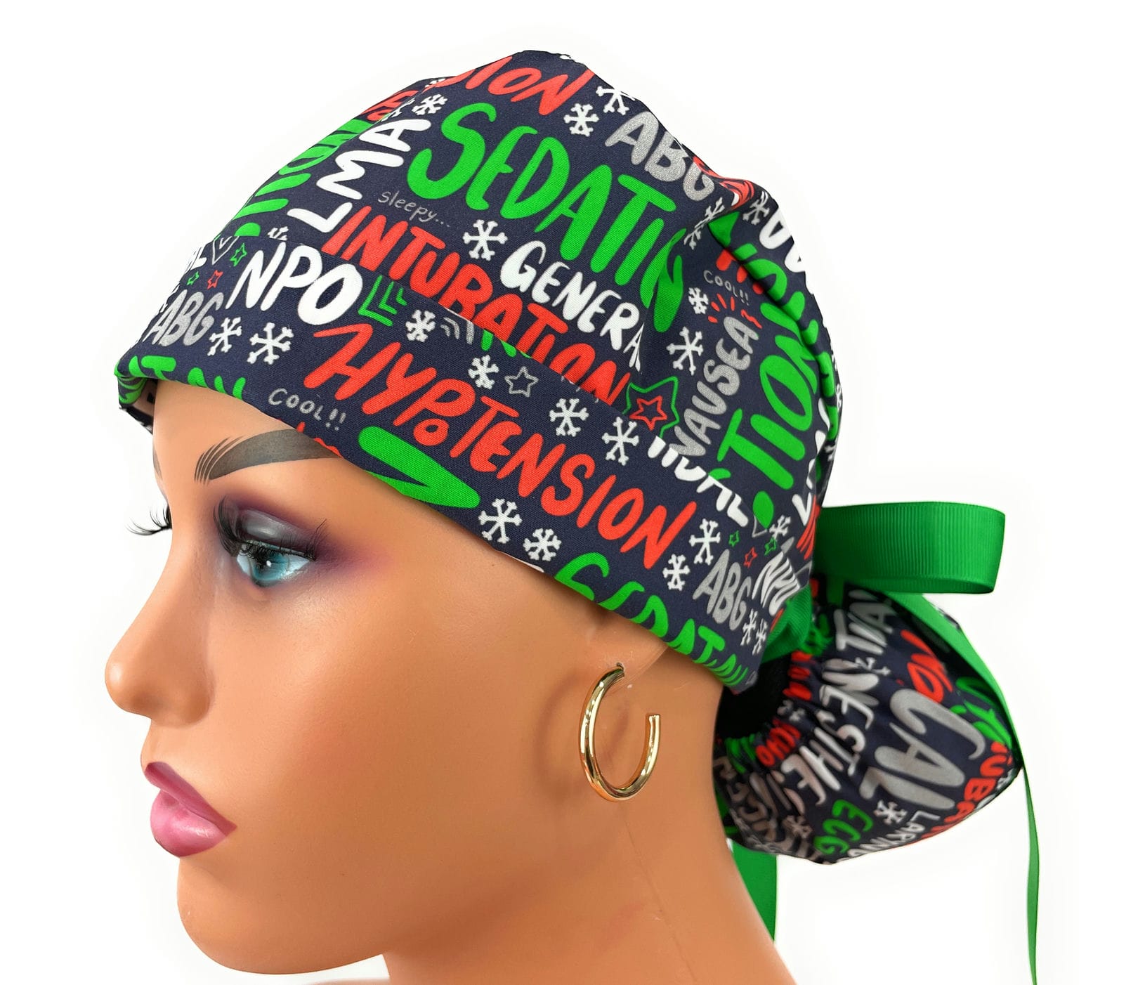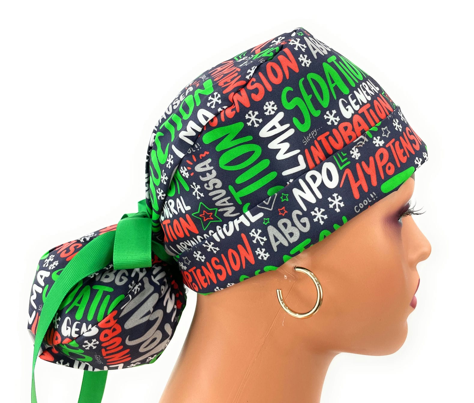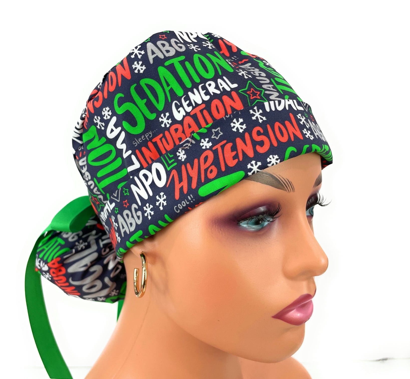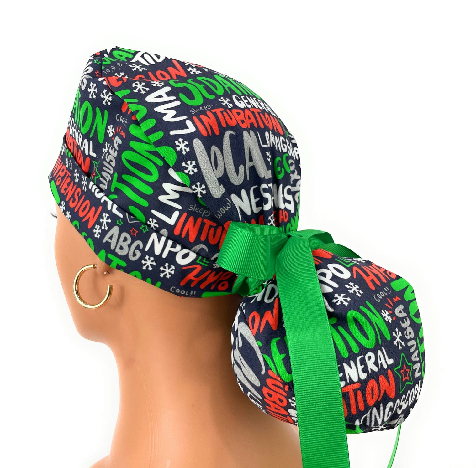 Turn Up Ponytail Medical Scrub Cap – Christmas – Anesthesia Meds Scribbles
