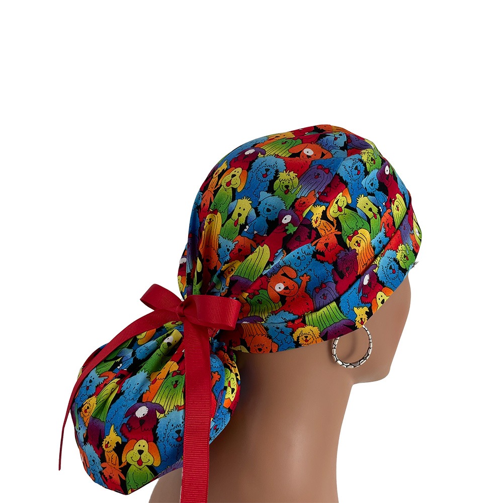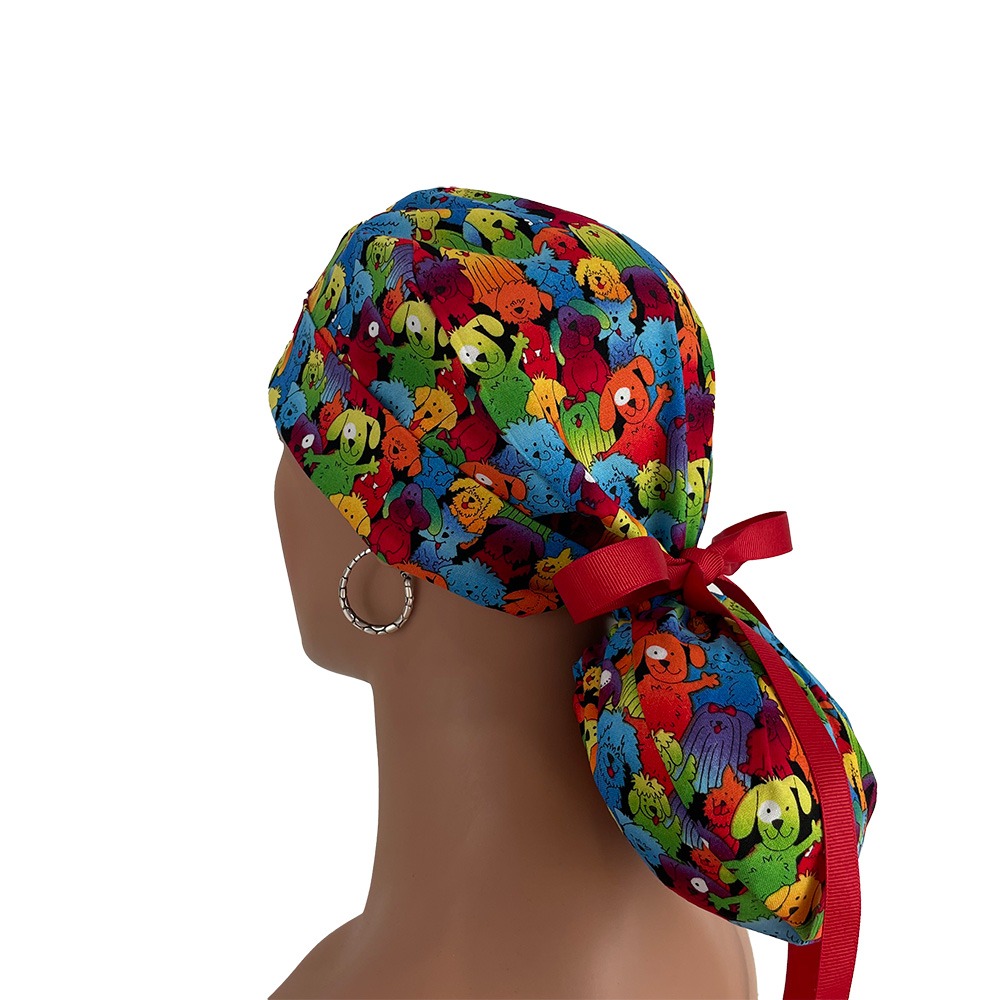 Turn Up Ponytail Medical Scrub Cap – Colorful Furry Friends