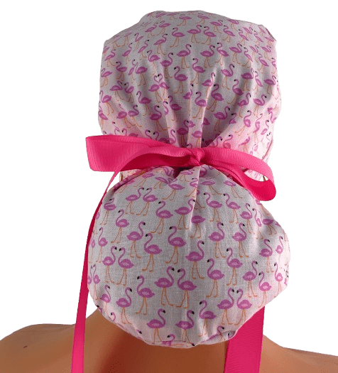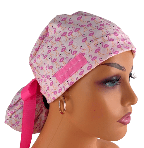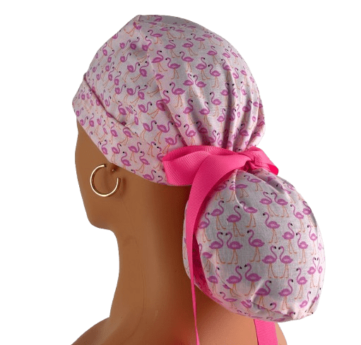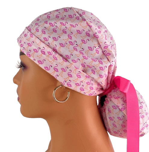 Turn Up Ponytail Medical Scrub Cap – Flamingos