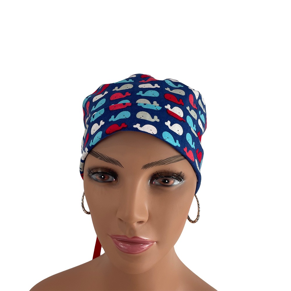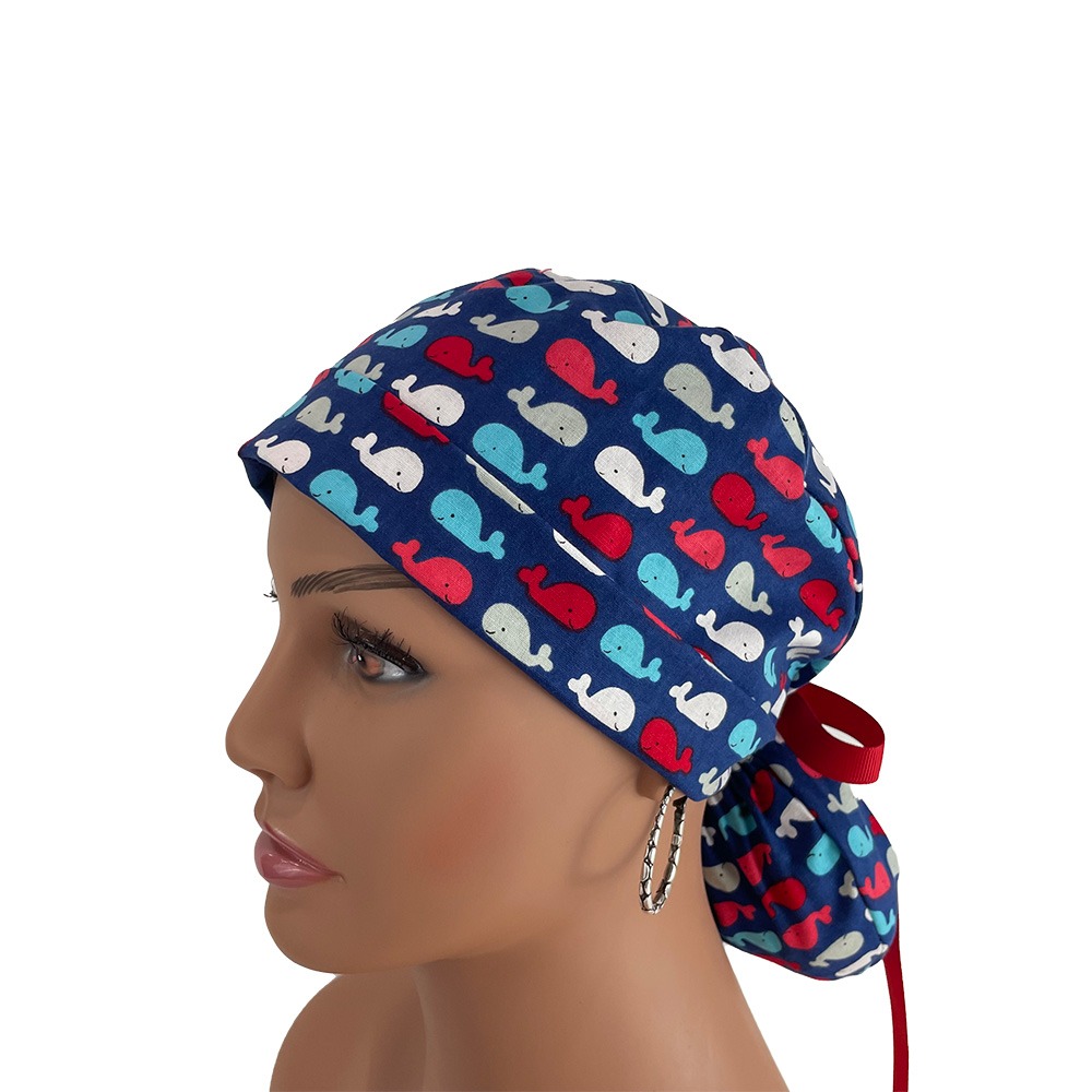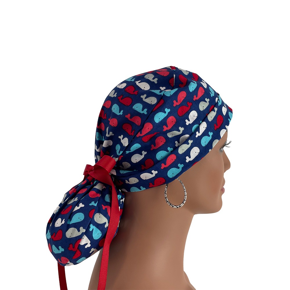 Turn Up Ponytail Medical Scrub Cap – Patriotic Whales