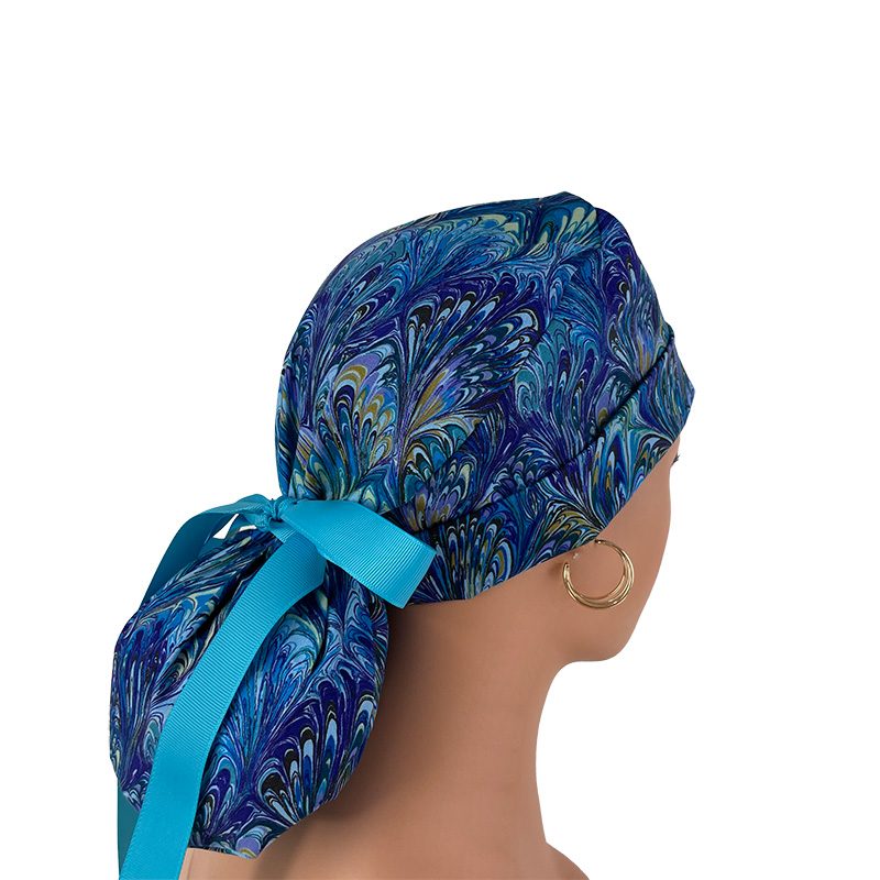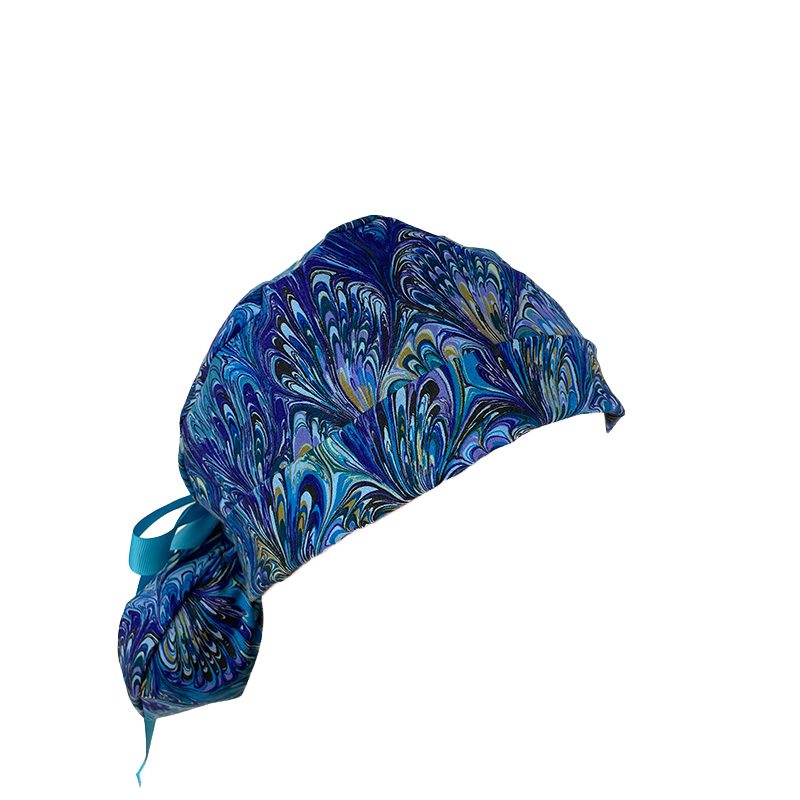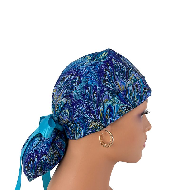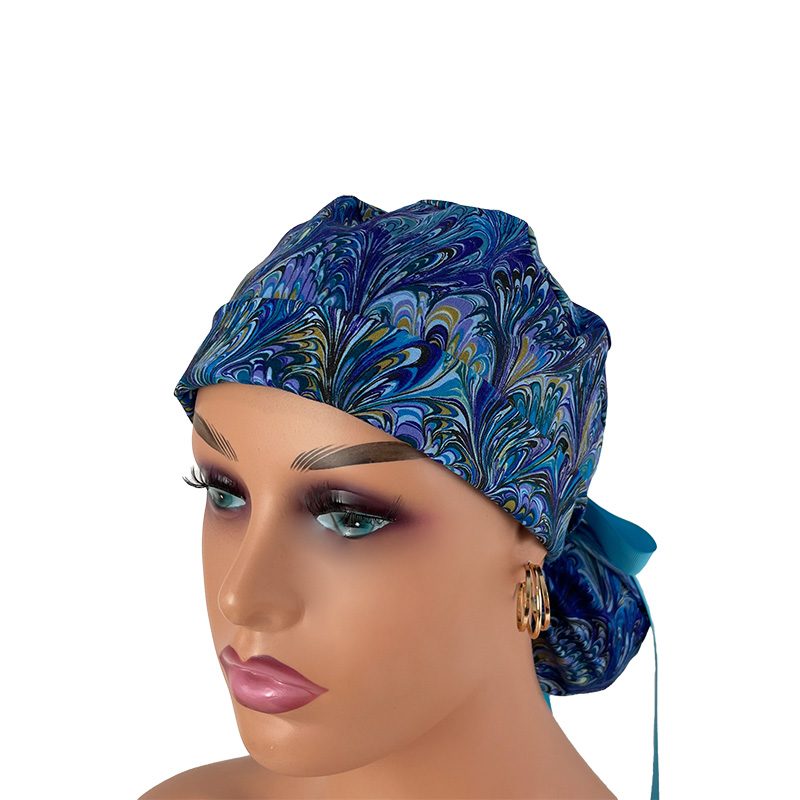 Turn Up Ponytail Medical Scrub Cap – Oil Slick – Blue