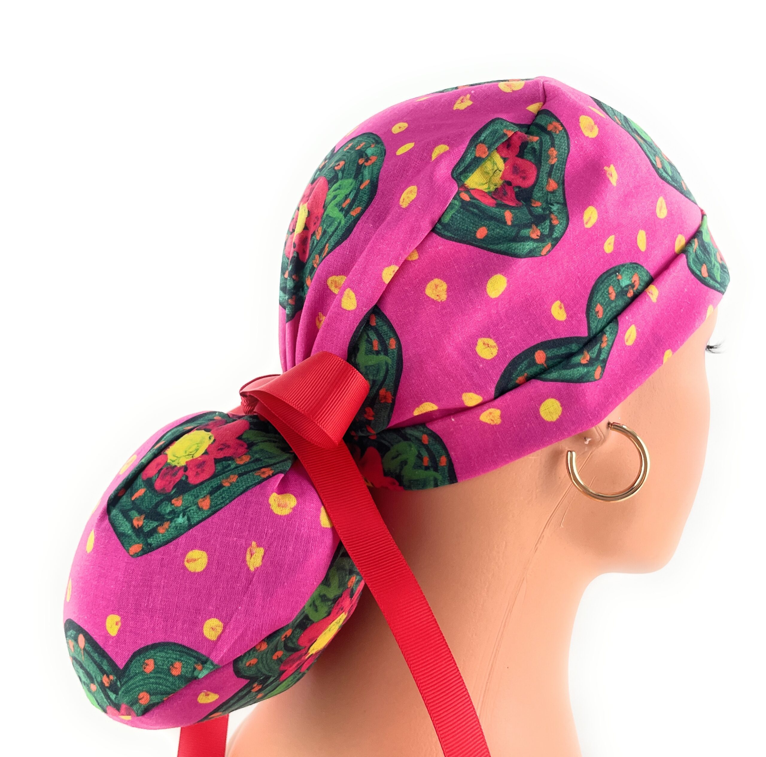 Turn Up Ponytail Medical Scrub Cap – St. Jude Flower Hearts by Tayde