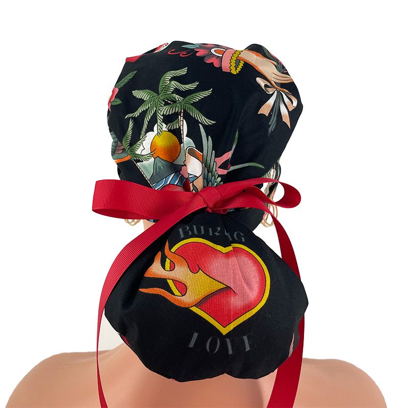 Turn Up Ponytail Medical Scrub Cap. True Love
