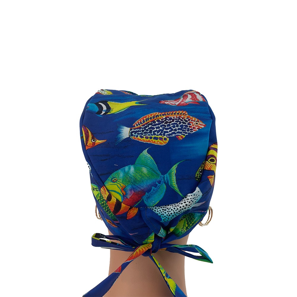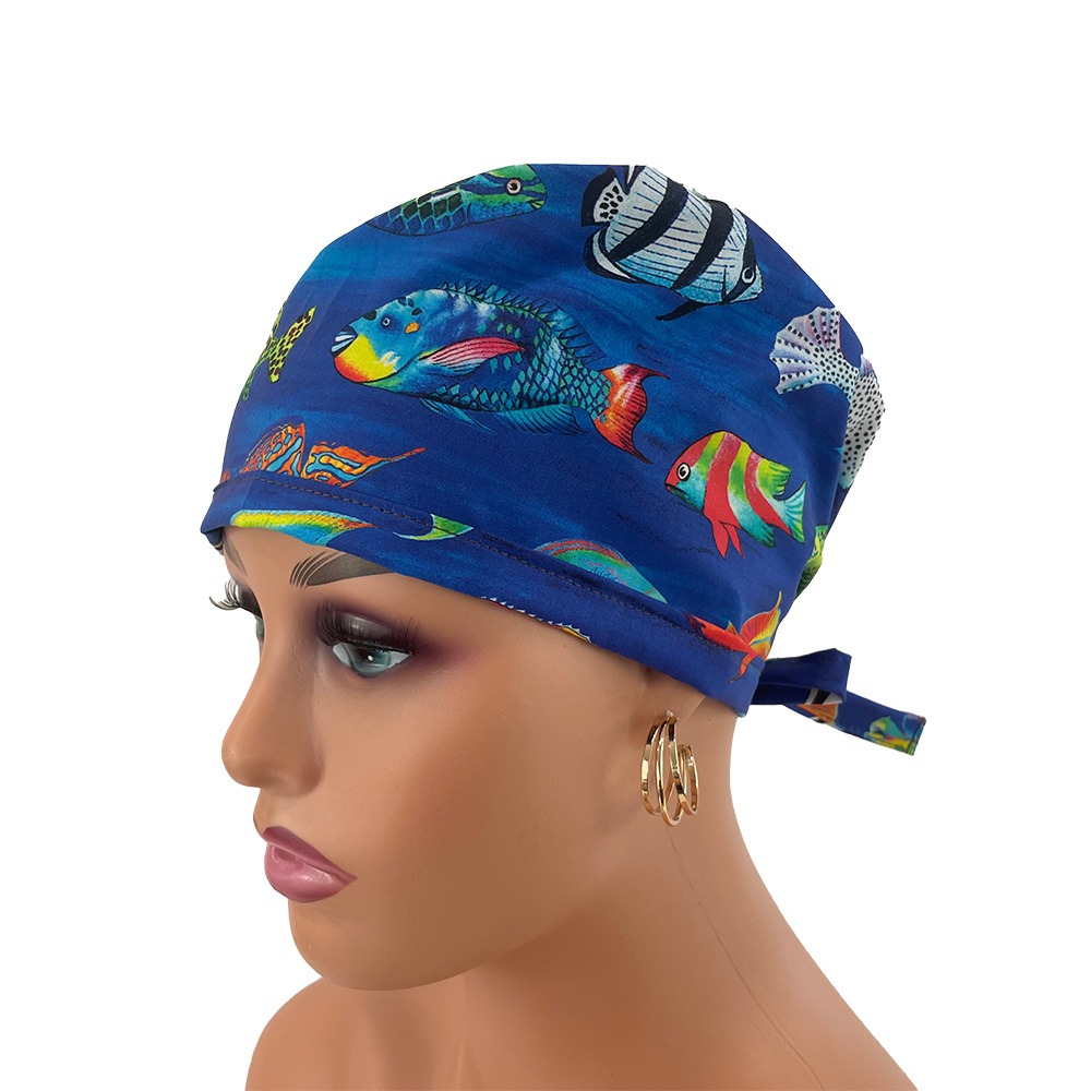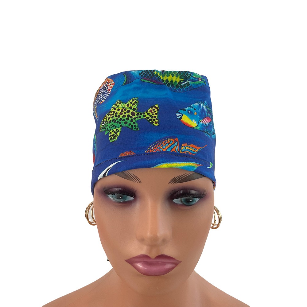 Unisex Medical Scrub Cap – Coral Canyon – Fish Highway – Ocean Blue – DIGITAL PRINT