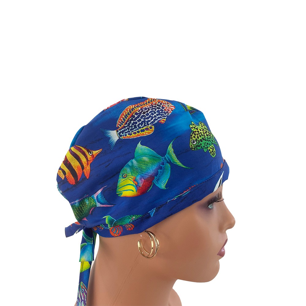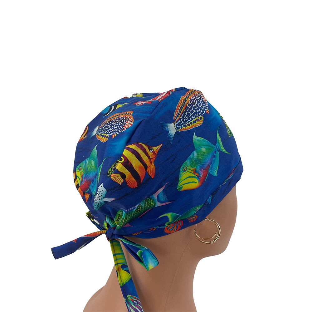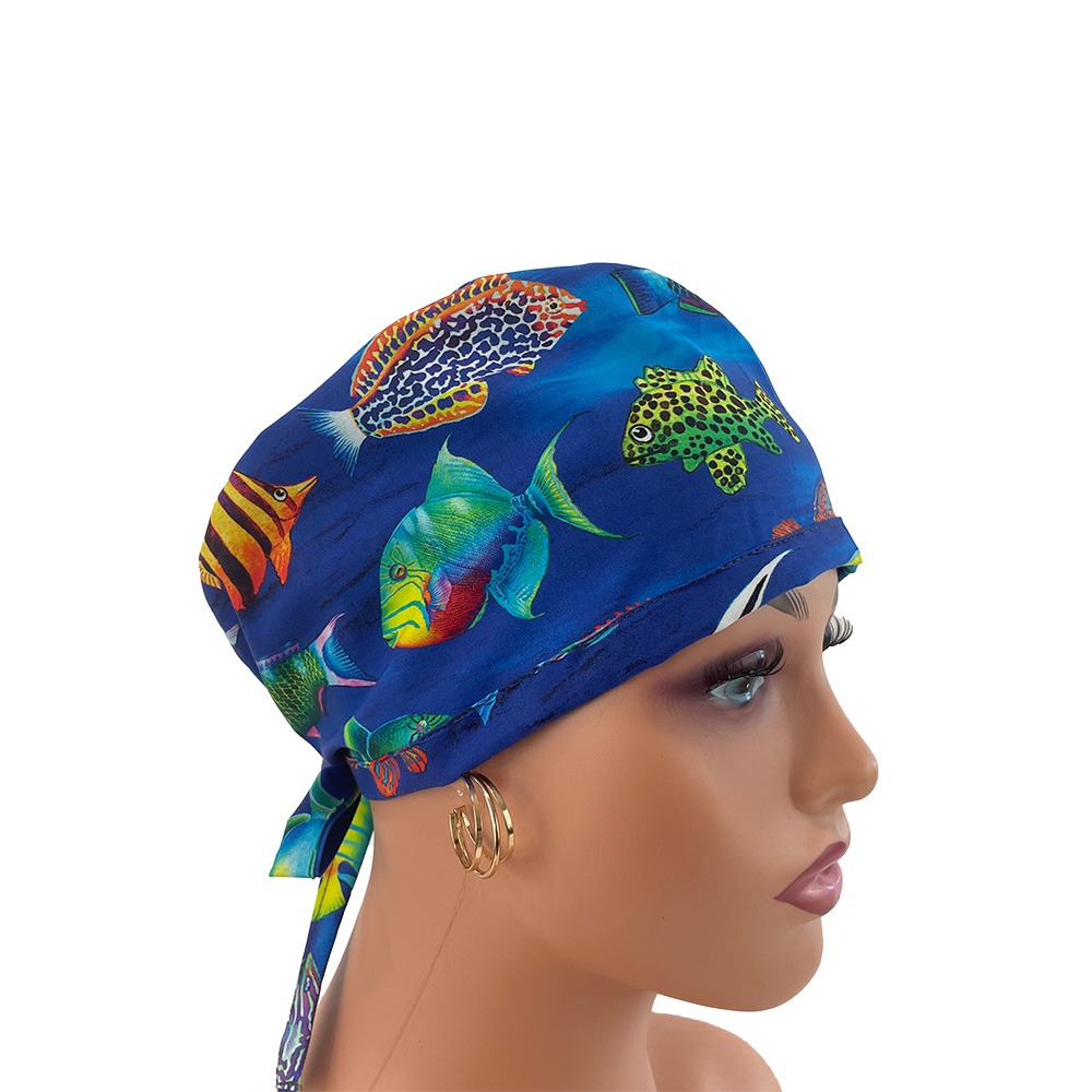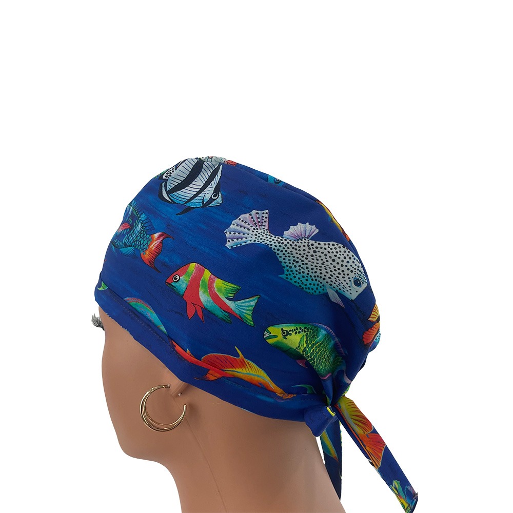 Unisex Medical Scrub Cap – Coral Canyon – Fish Highway – Ocean Blue – DIGITAL PRINT